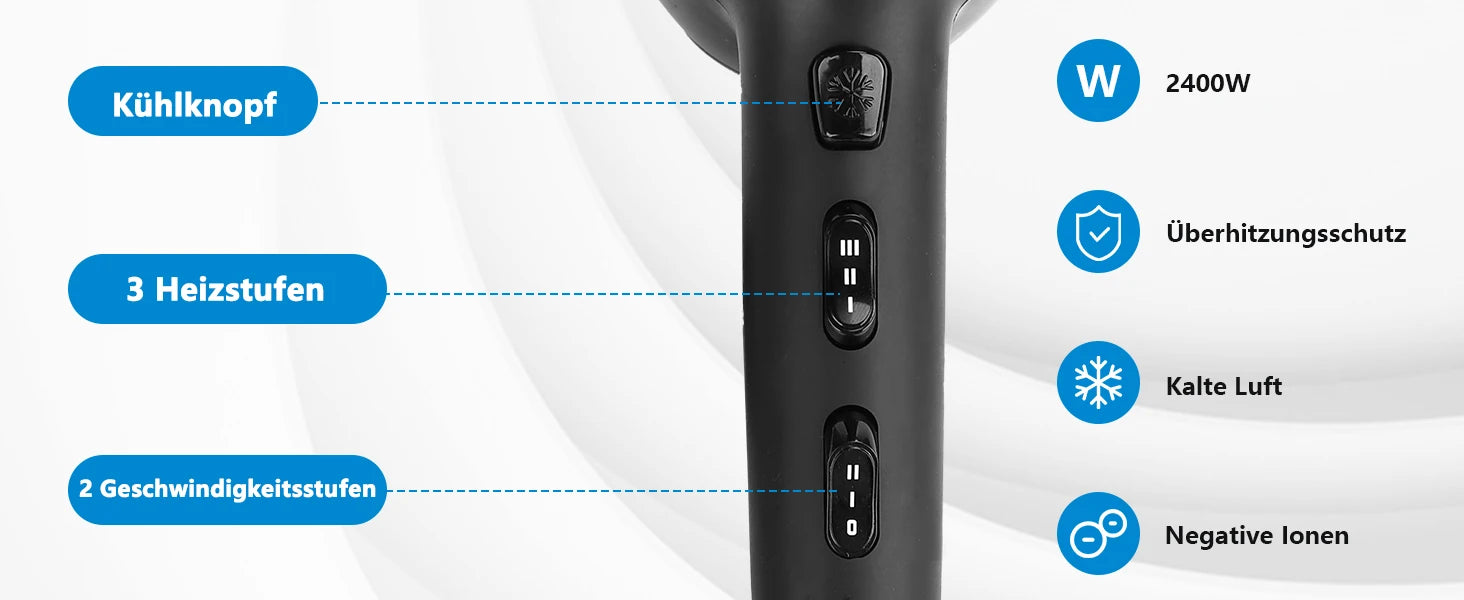 Aigostar Monique 32HIE Professional 2400W Ionic Hair Dryer with 2 Speeds and 3 Temperature Settings - Cold Air Button.Overheat P