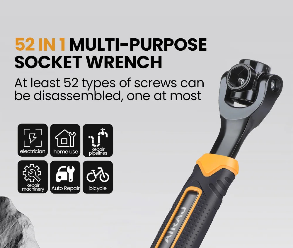 AIRAJ Schraubenschlüssel, 52-in-1-Werkzeugstecknuss, funktioniert mit Universal-Ratsche, Spline-Schrauben, Hülsen-Rotationswerkzeug, 360-Grad-Multifunktions-Handwerkzeug