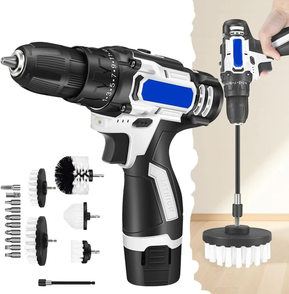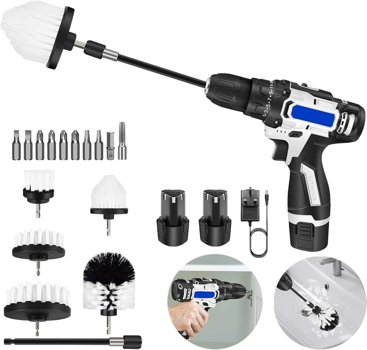 Allzweck-Akku-Bohrmaschine zum Bohren, elektrischer Schleuderschrubber, elektrische Reinigungsbürste zum Reinigen mit Li-Ionen-Akku
