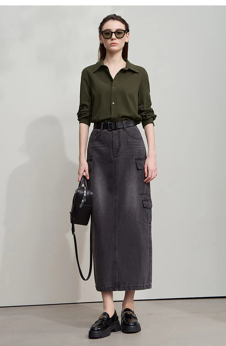 AMII Office Lady Shirt 2025 Autumn New Minimalism thick Long Sleeves Blouse Elastic Cotton Lapel Women's Clothing 12553079