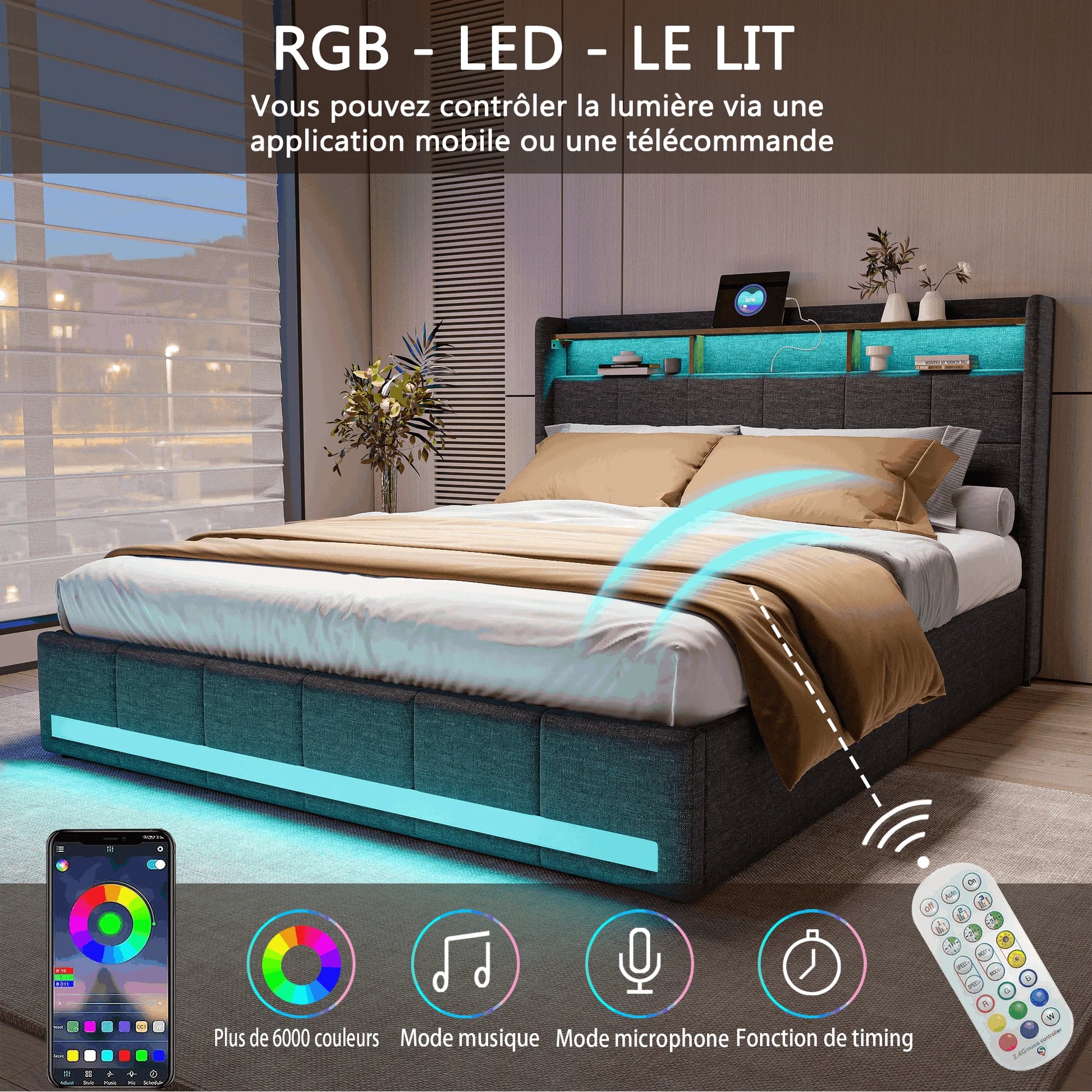 Anajqaqia 160 x 200 cm gepolstertes Doppelbett mit LED-Licht, mit Schublade, mit Aufladung