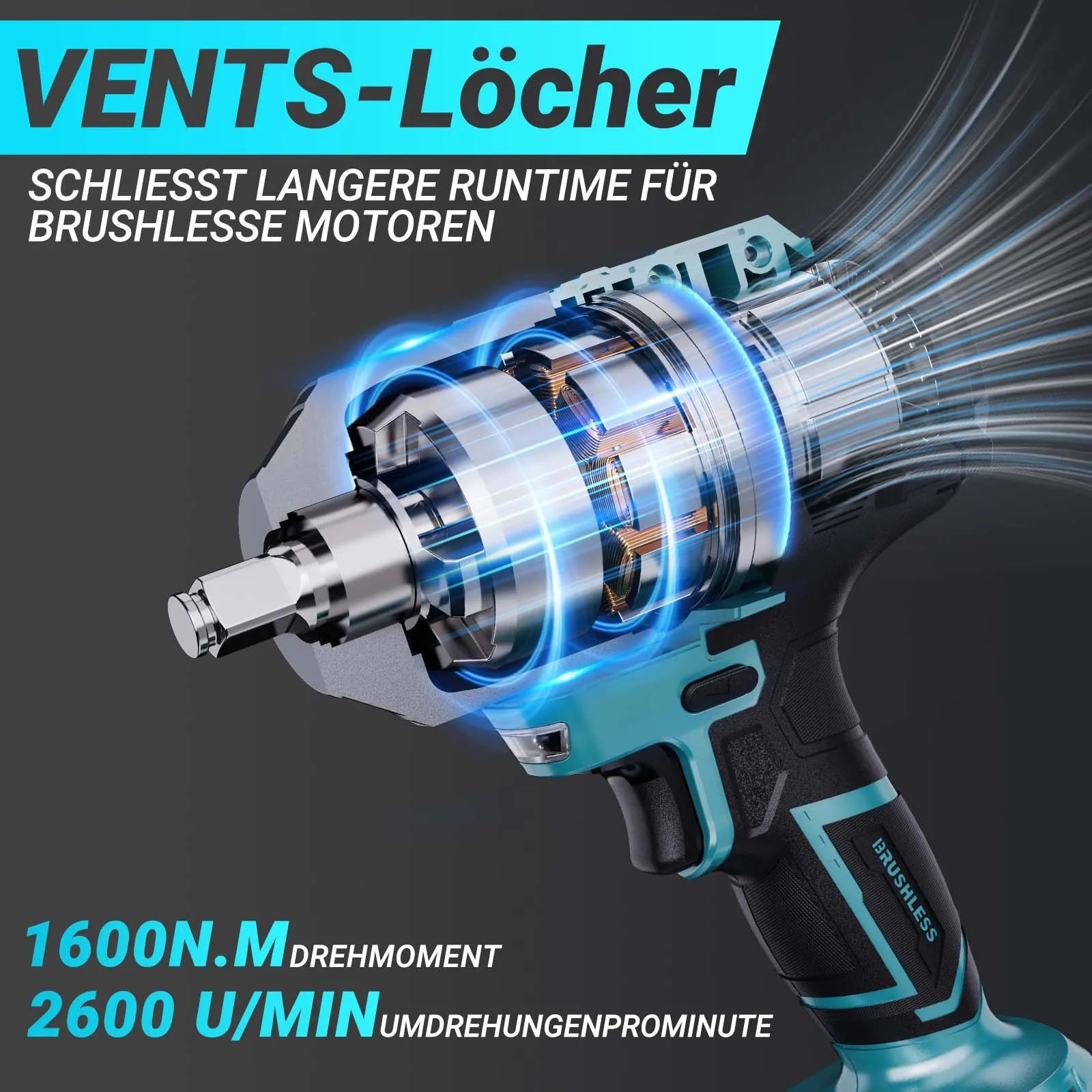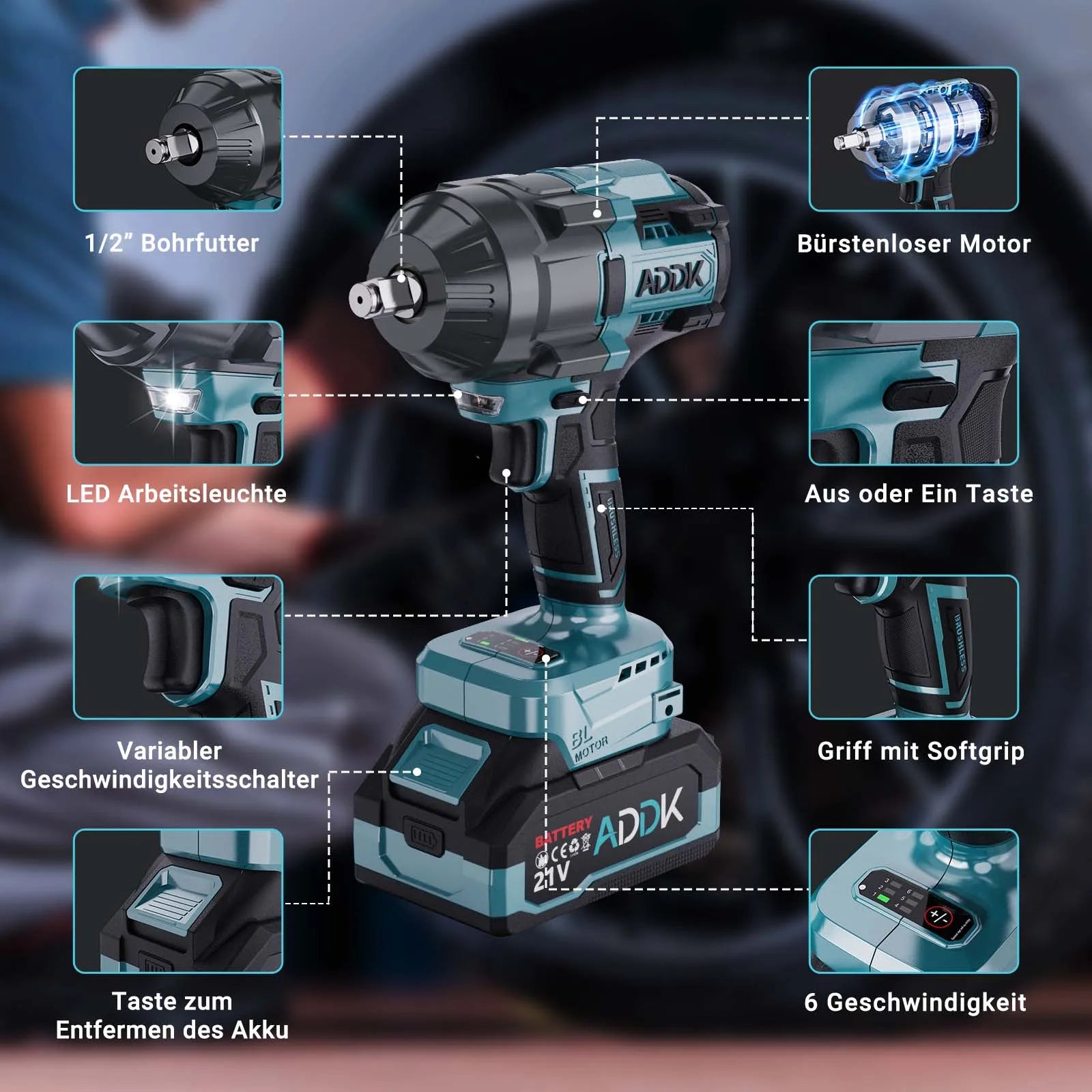 Anajqaqia Elektroschraubenschlüsselsatz, 1600 Nm 6-Gang-Einstellung, 4000 mAh Akku, 21 V Lithium-Akku-Elektroschrauber, Elektrowerkzeuge