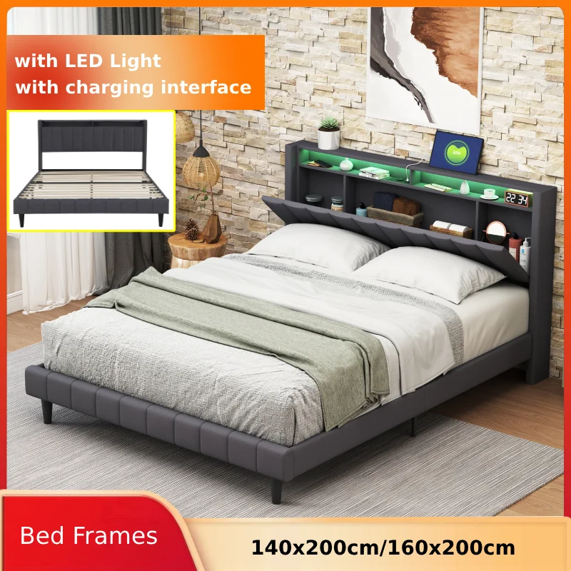 Anajqaqia gepolstertes Doppelbett 140 x 200 cm, 160 x 200 cm, mit Licht und Aufladung, ohne Matratze