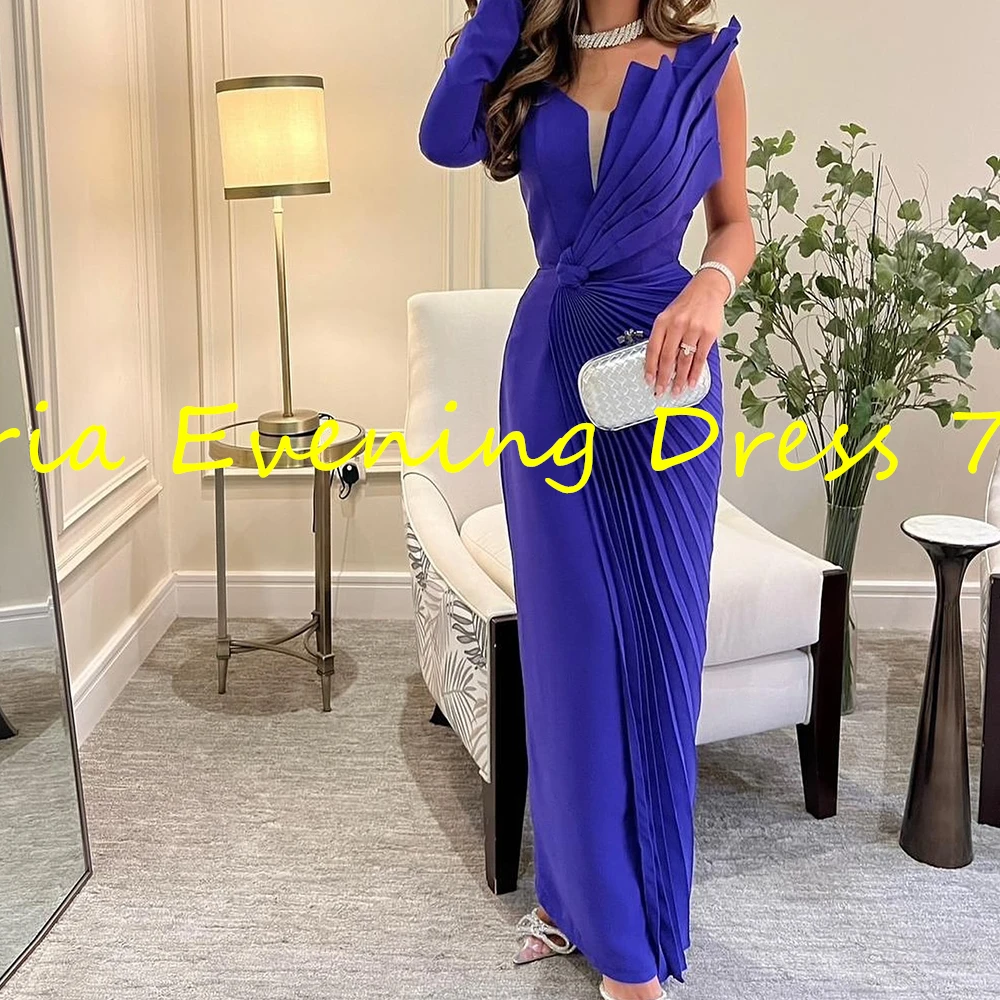 Angepasst Hohe Qualität Gerade Knöchel Länge Eine Schulter Jersey Lange Ärmeln Abendkleid Klassische vestidos para mujer