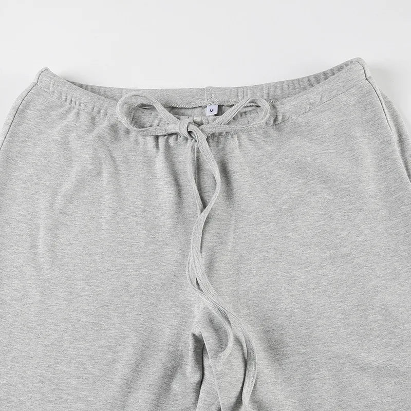 Apprabant Casual Fashion Drawstring High Waist Trousers Set Lace Up Flared Sleeve V Neck Twist Tops Plush Loose Pants Suit