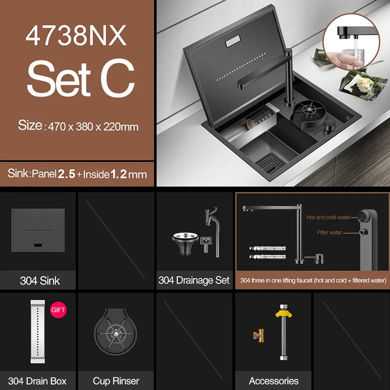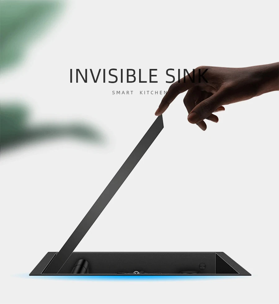 ASRAS Hidden Bar Island kitchen Sink Nanometer SUS 304 Flip Cover Hidden Handmade Small Size kitchen Sinks With Cup Rinser