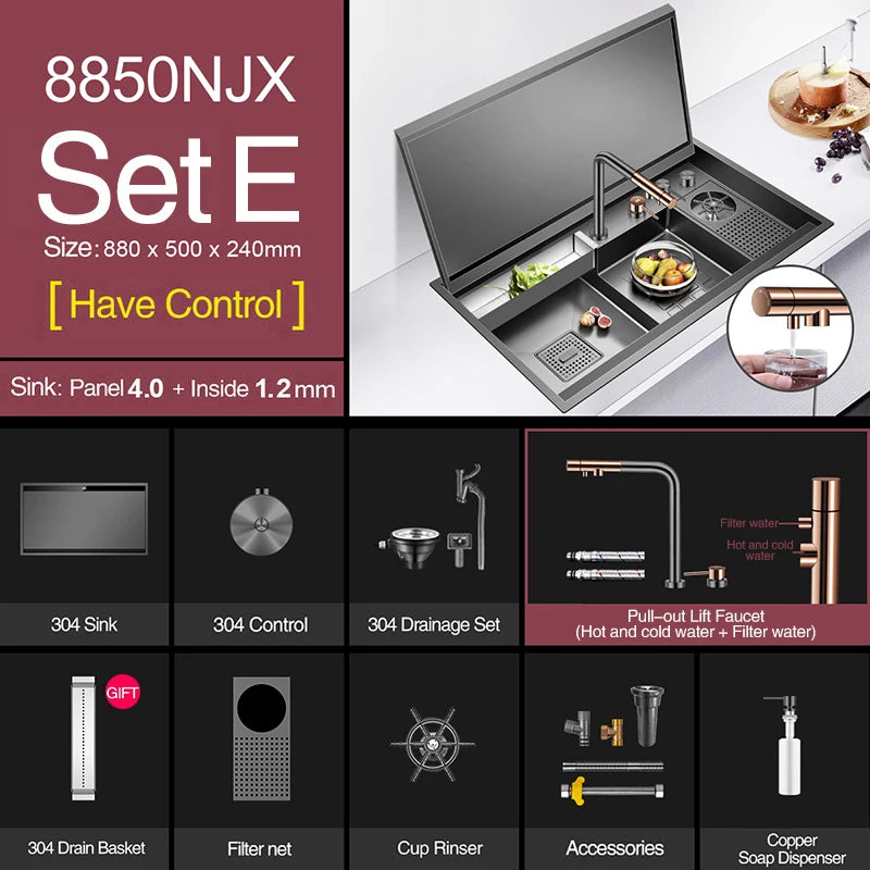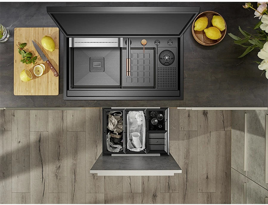 ASRAS Large Size Flip Cover Hidden Island Kitchen Sink 304 Stainless Steel 4mm Thickness Handmade Stepped Sink Cup Rinser Sinks