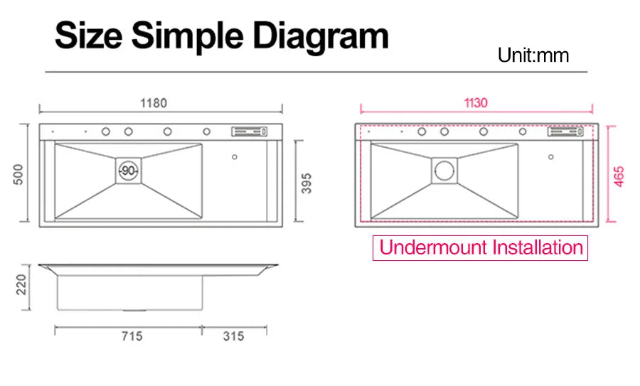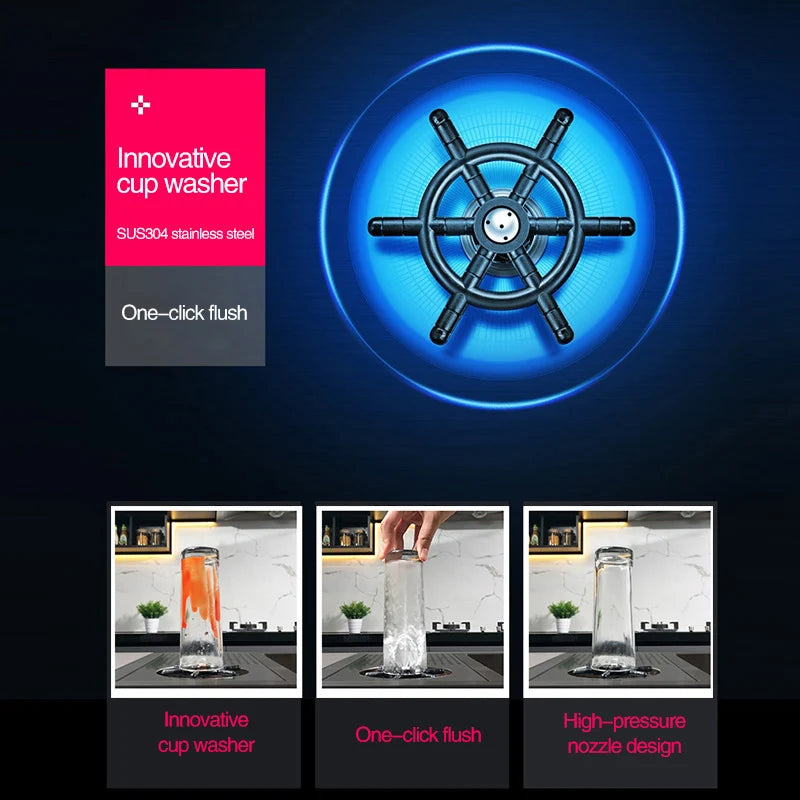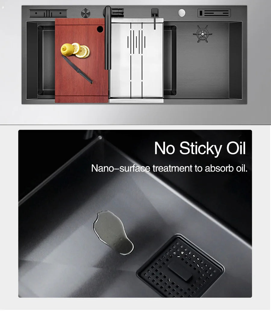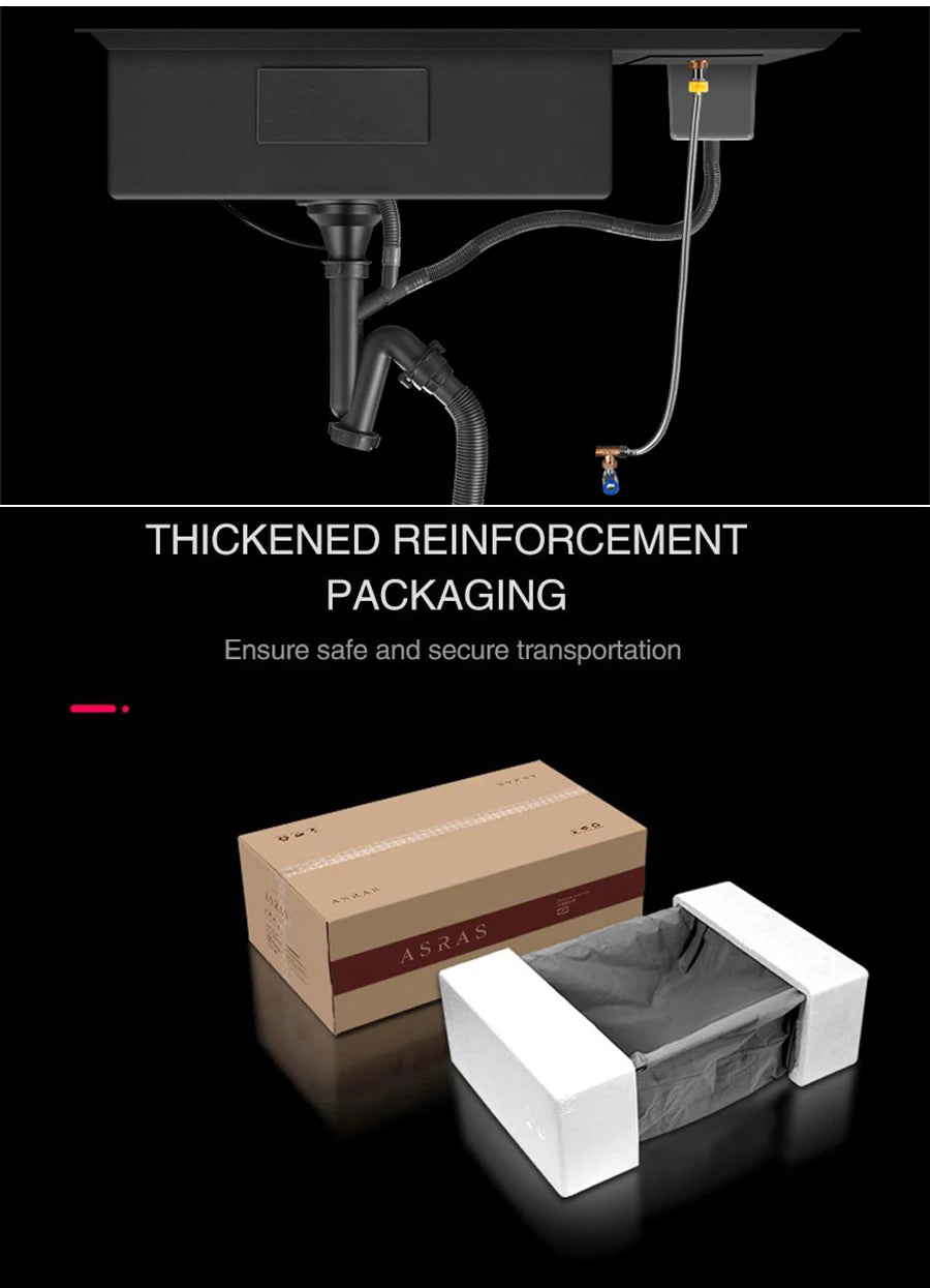 ASRAS New Nanometer Large Size Single Cup Rinser Kitchen Sink 4mm Thickness 220mm Depth With Drain Plate Knife Holder Sinks
