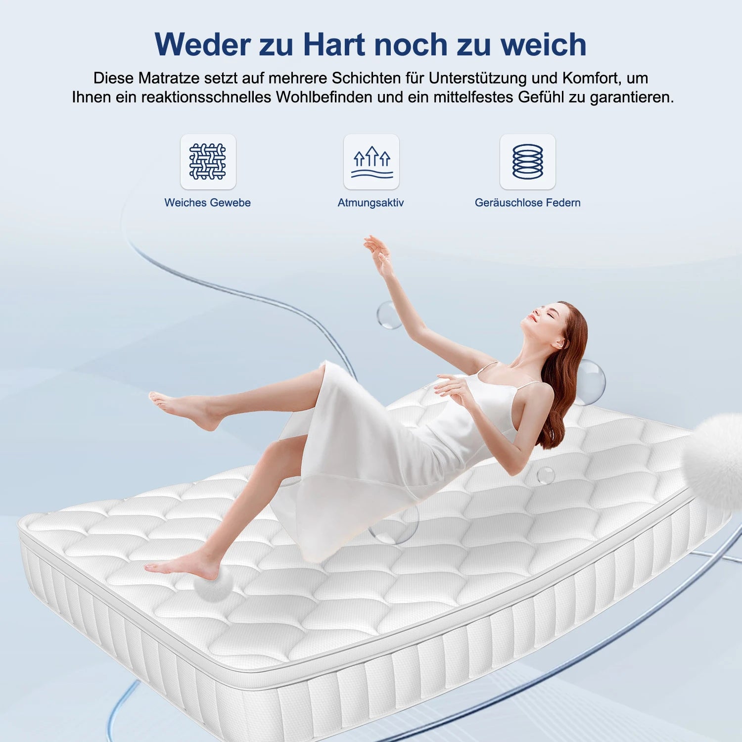 AUTHMIC 7-Zonen-Taschenfederkernmatratze, 25 cm dick, mittelfest, Hybrid, atmungsaktiv, Anti-Milben, geräuschlos, Bett für Erwachsene, Schlafunterstützung