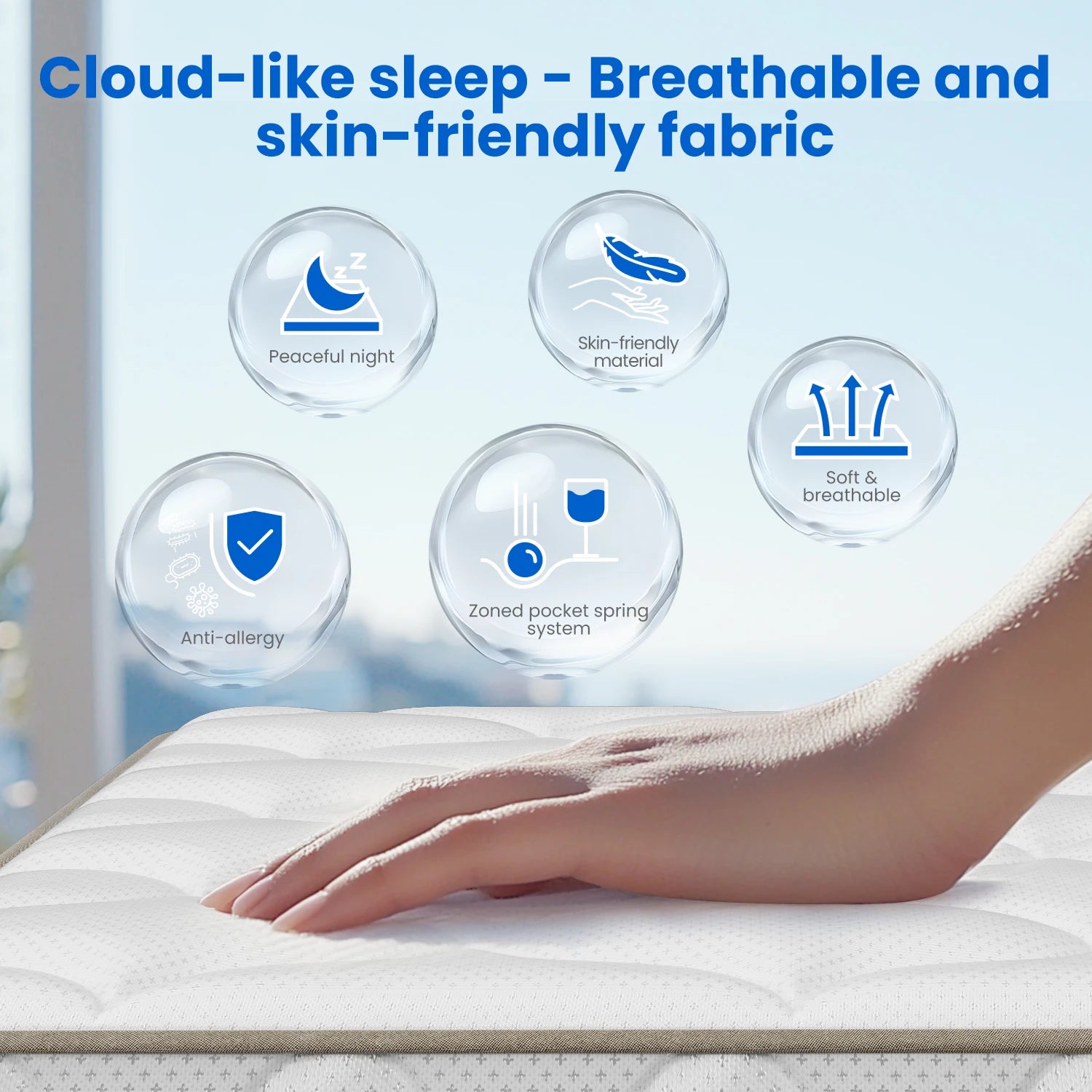 AUTHMIC 7-Zonen-Taschenfederkernmatratze aus Naturlatex-Memory-Schaum, 140 x 200 cm, 90 x 200 cm, orthopädisches Rückenstützbett