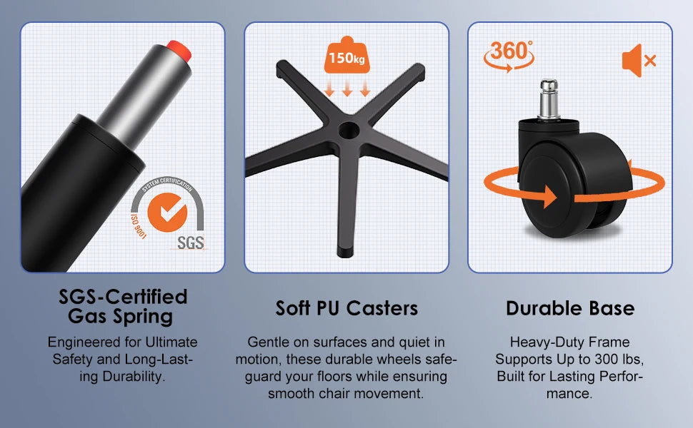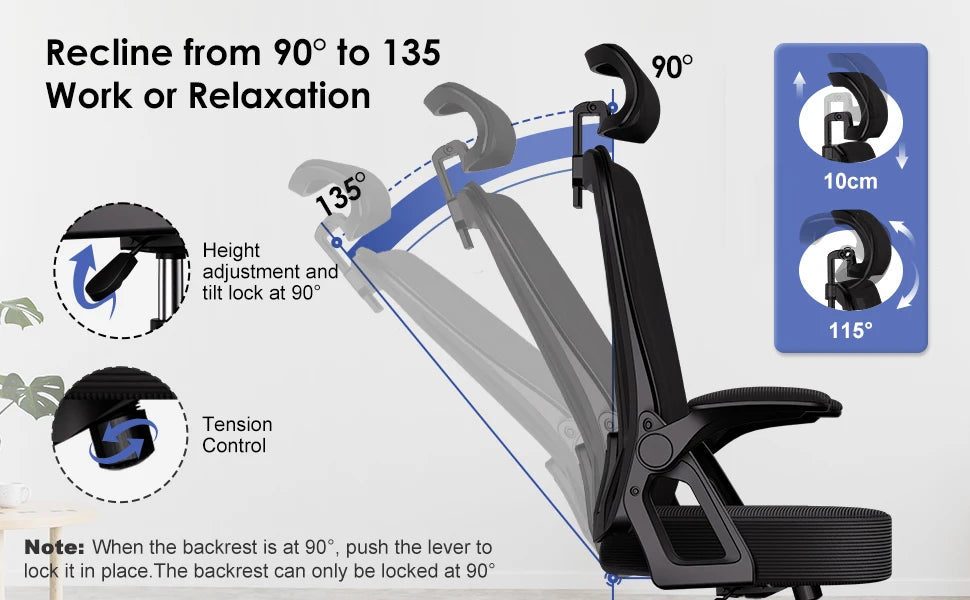 AUTHMIC Ergonomischer Bürostuhl – faltbare Armlehnen, verstellbare Rückenlehne, verstellbare Kopfstütze, verstellbare Lendenwirbelsäule, maximale Belastung 150 kg,