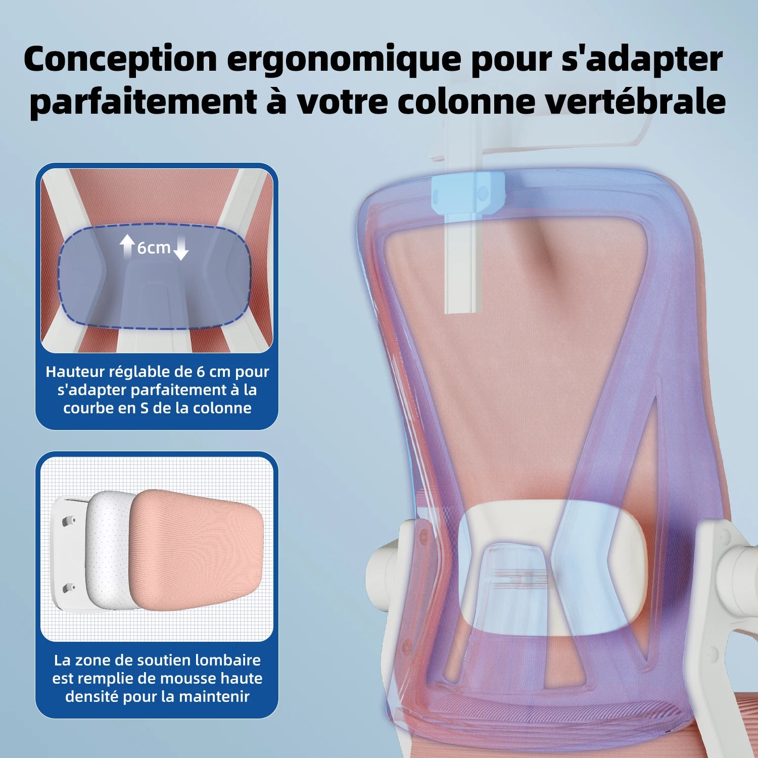 AUTHMIC Ergonomischer Bürostuhl (ROSA) mit klappbaren Armlehnen, verstellbarer Rückenlehne, verstellbarer Kopfstütze und Lordosenstütze, 150 kg