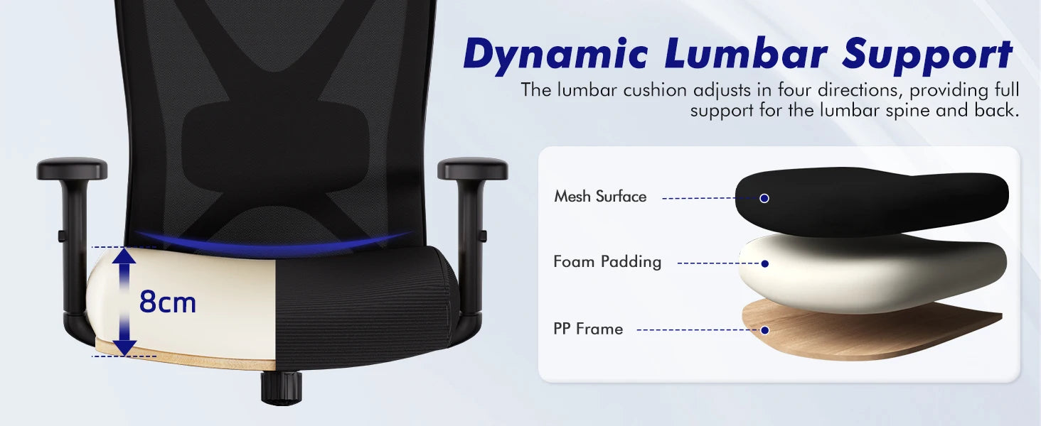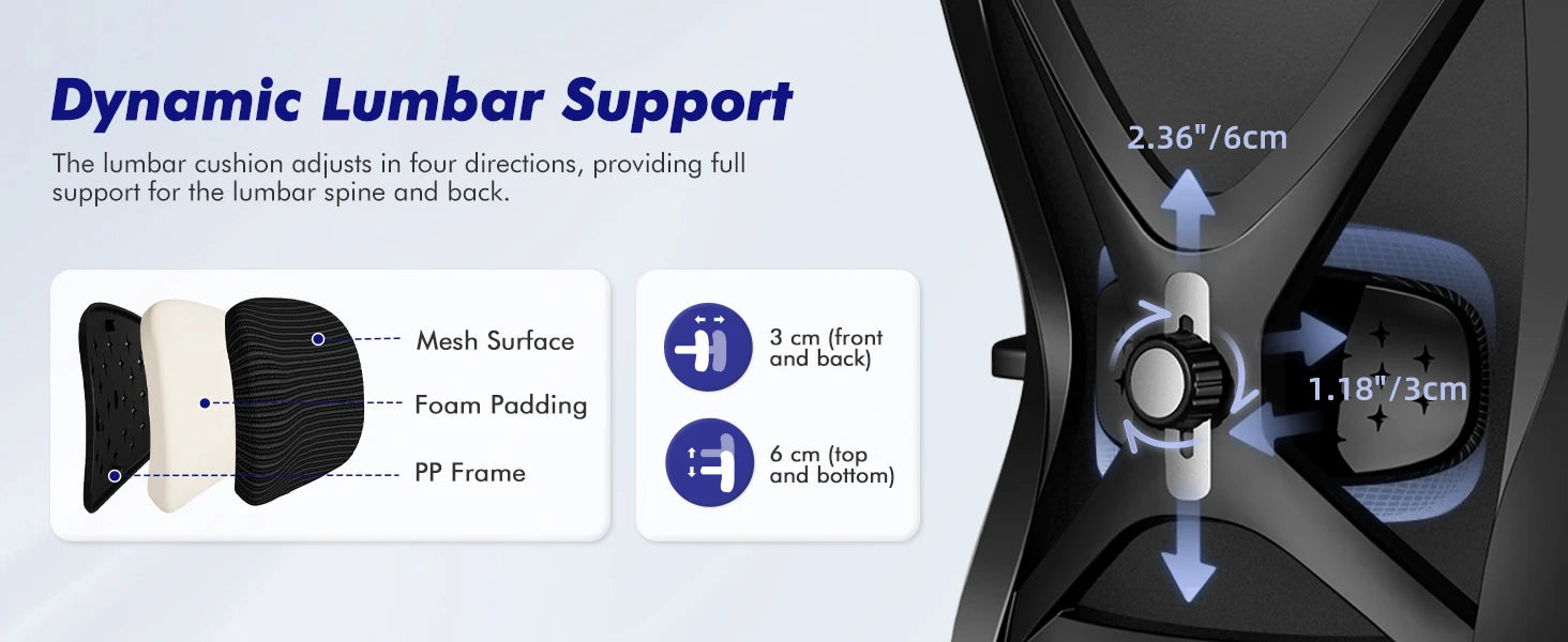 AUTHMIC Ergonomischer Bürostuhl, verstellbare Netzrückenlehne, Lordosenstütze, drehbarer Computer-Schreibtischstuhl für Zuhause, Büro, Arbeit, Gaming