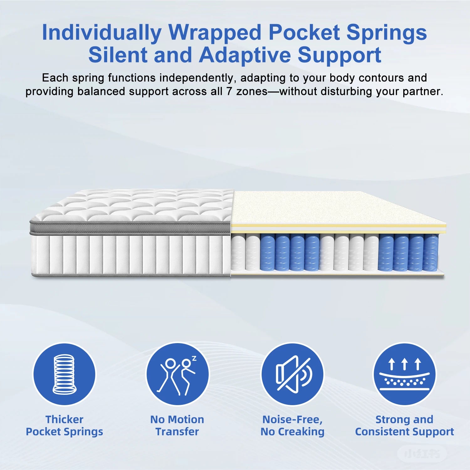 AUTHMIC Matratze 25 cm dicke Taschenfederung mit 7-Zonen-adaptierender Unterstützung, atmungsaktiv und hautfreundlich, mittlerer Fest für ruhigen Schlaf