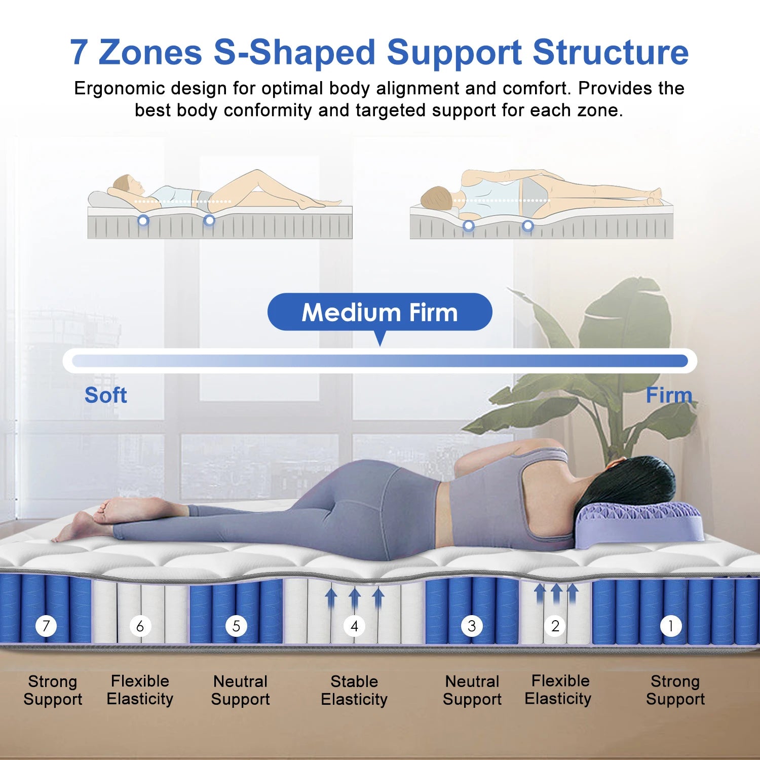 AUTHMIC Matratze – Taschenfederung, 7-Zonen-adaptive Unterstützung, 25 cm dick, atmungsaktiv und hautfreundlich, mittelfestes Gefühl, ruhiger Schlaf