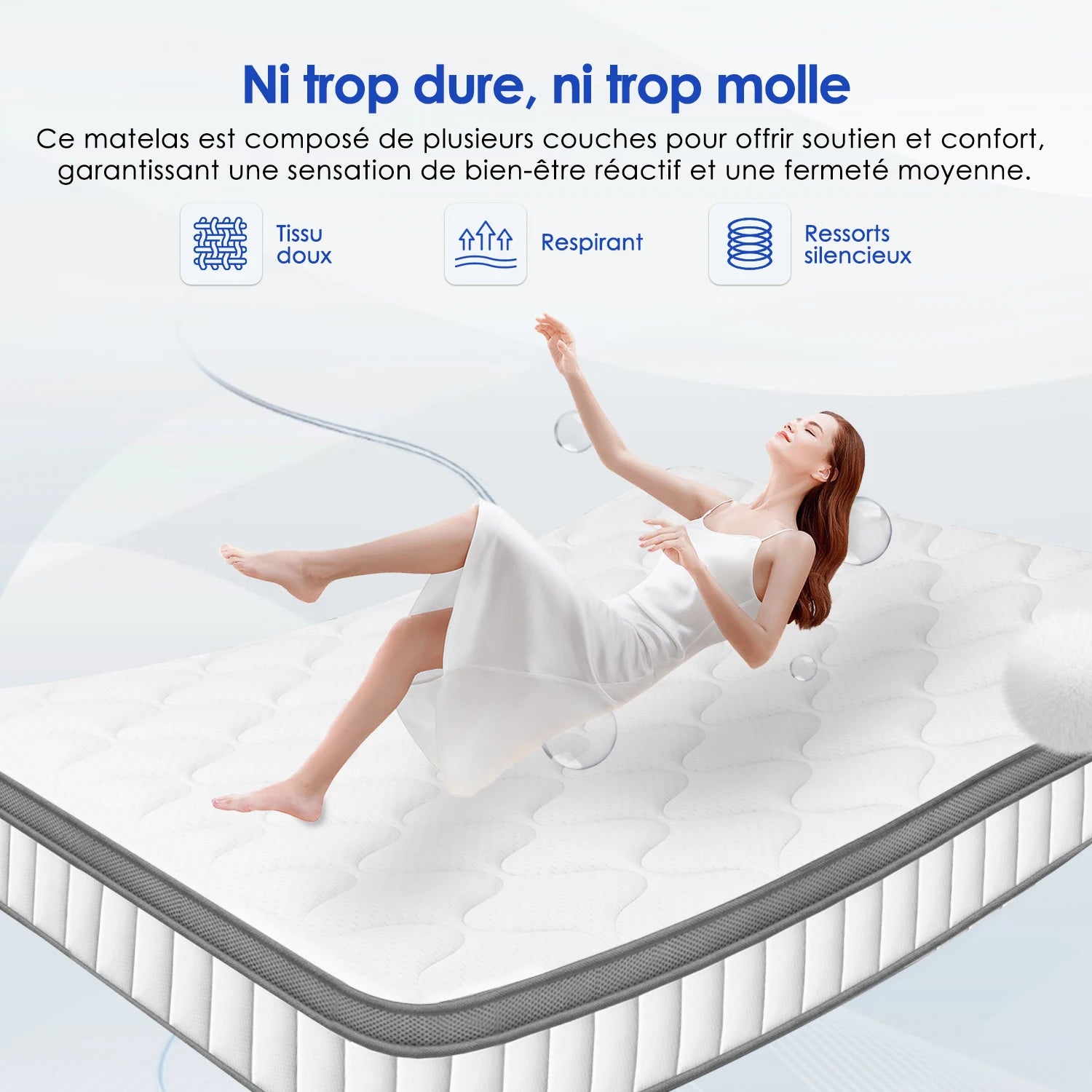 AUTHMIC Orthopädische Matratze 25 cm mit Taschenfedern, 7-Zonen-Rückenstütze, mittelfestes Gefühl, atmungsaktiver, hautfreundlicher Stoff