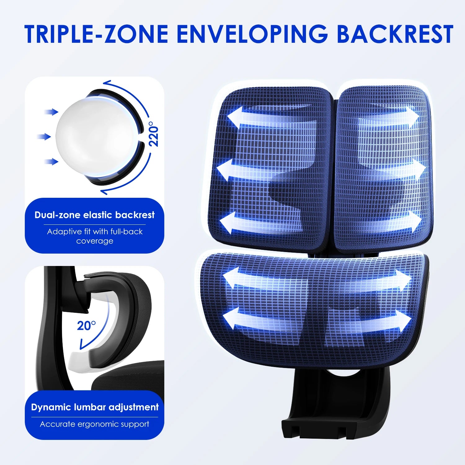 AUTHMIC Premium Ergonomischer Bürostuhl mit 6D-verstellbaren Armlehnen, 3D-Kopfstütze, 3-Zonen-Rückenlehne, 200 kg Tragkraft, Liegestuhl 90 ° -160 °