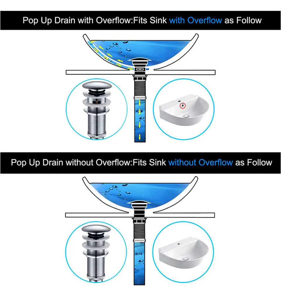 Bad Eitelkeit Waschbecken Pop Up Abfluss mit Überlauf, Wasserhahn Schiff Pop Up Abfluss Stopper
