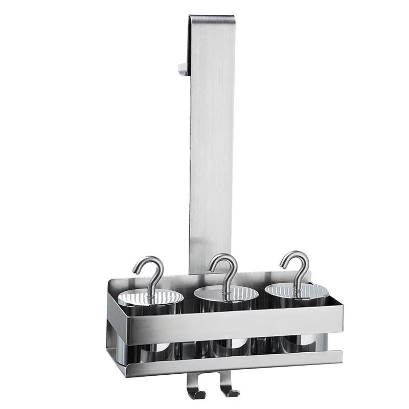 Badezimmer-Tür-Rückseite, hängendes Regal aus Edelstahl über Glastür, Aufbewahrungsregal, Shampoo-Halter, Aufbewahrungstablett für Toilettenartikel mit Haken