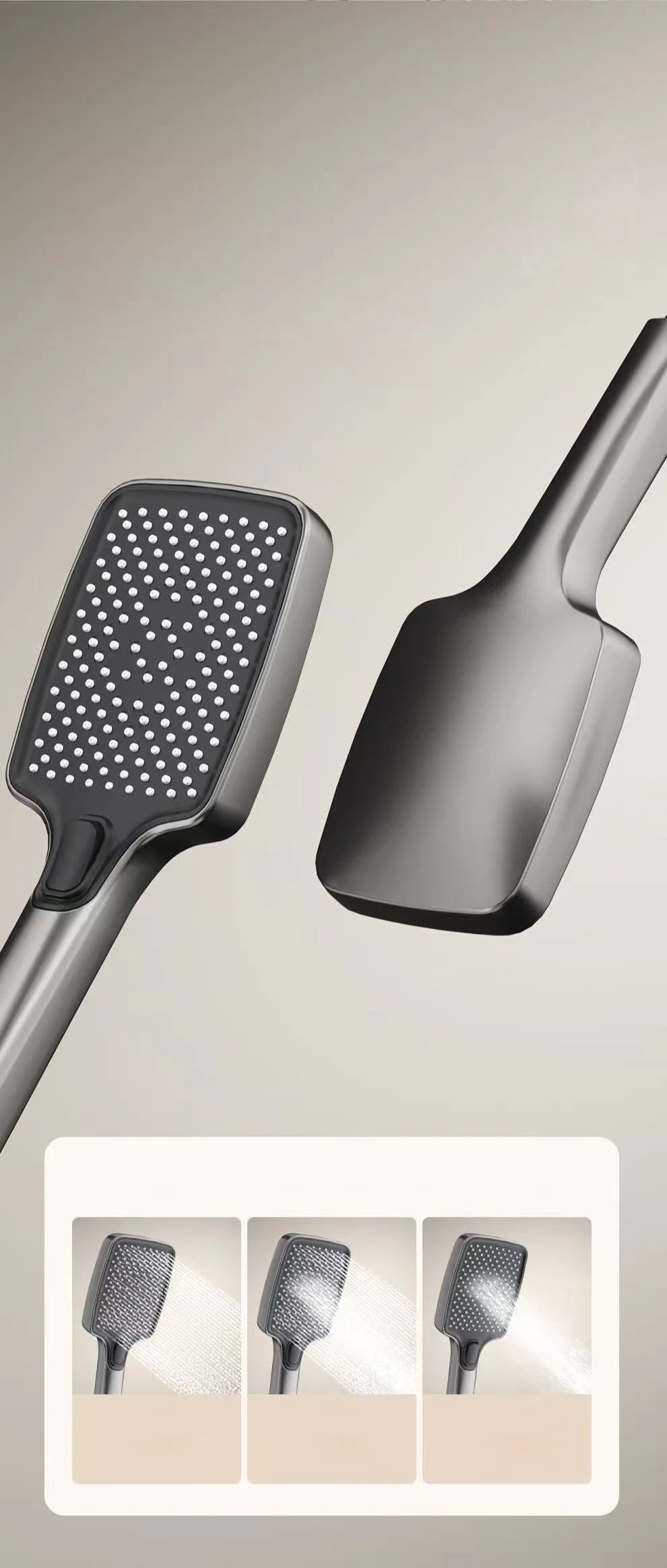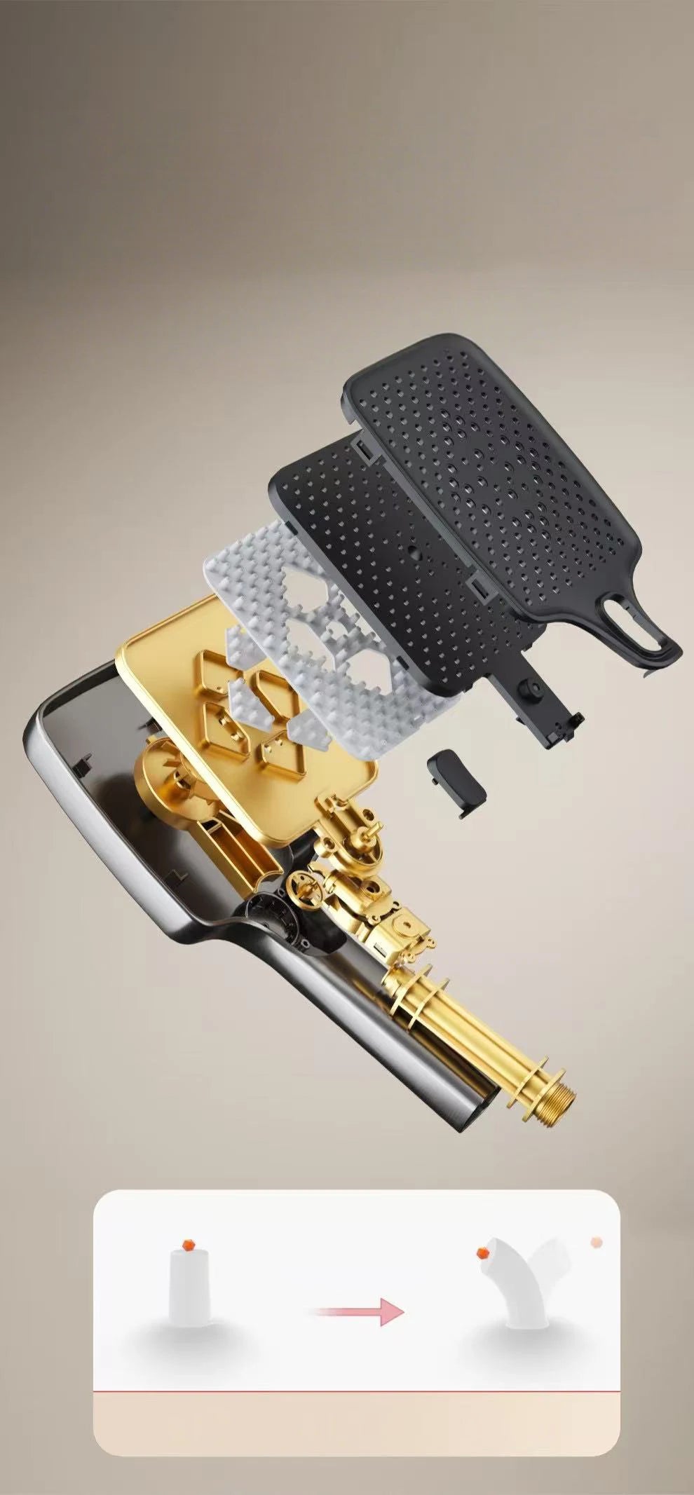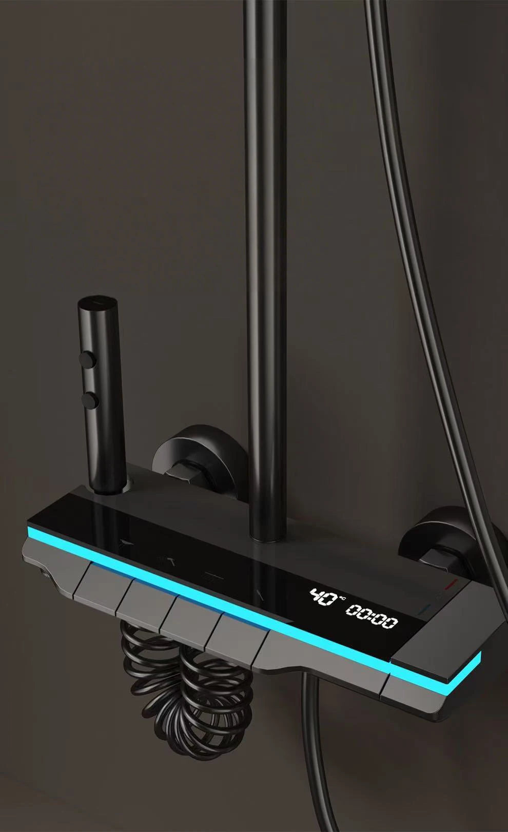 Bathroom Shower System Brass Mirror Surface Temperature-Controlled for Bathtub Faucet with Digital Display, LED Strip