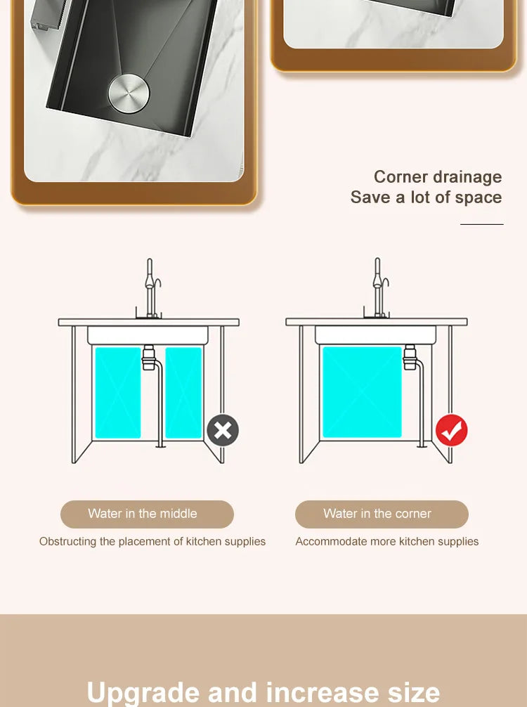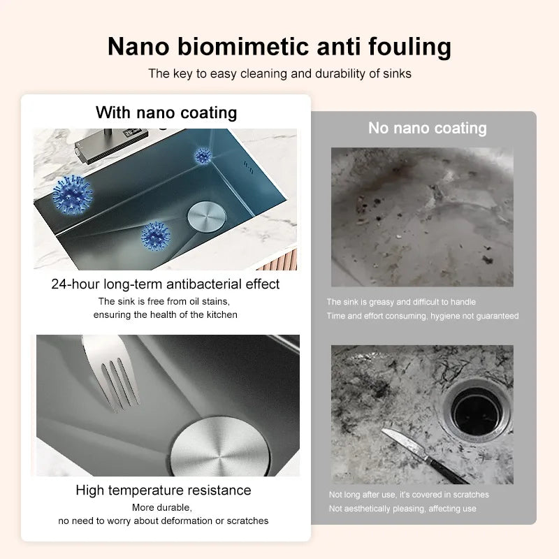 Black Stainless Steel Kitchen Sink Waterfall Sink dishwashing Basin Large Single Sink Household Sink Under The Counter Sink