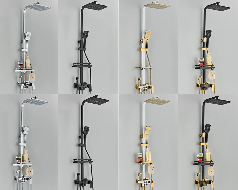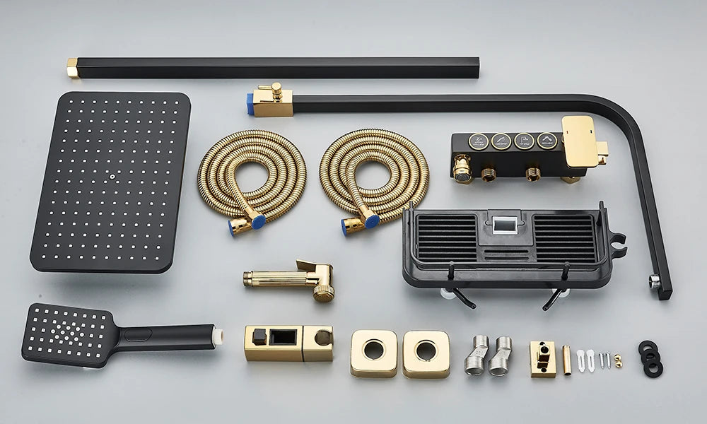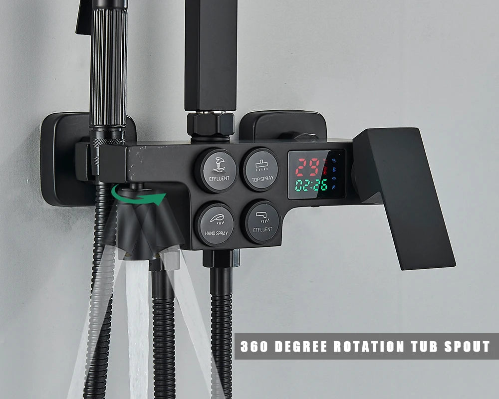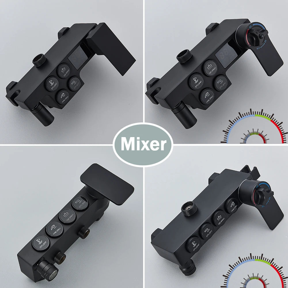 Black Thermostatic Shower Faucet Set For Bathroom Smart Display Hot Cold Water Mixer Tap Wall Mounted Rainfall System With Bidet