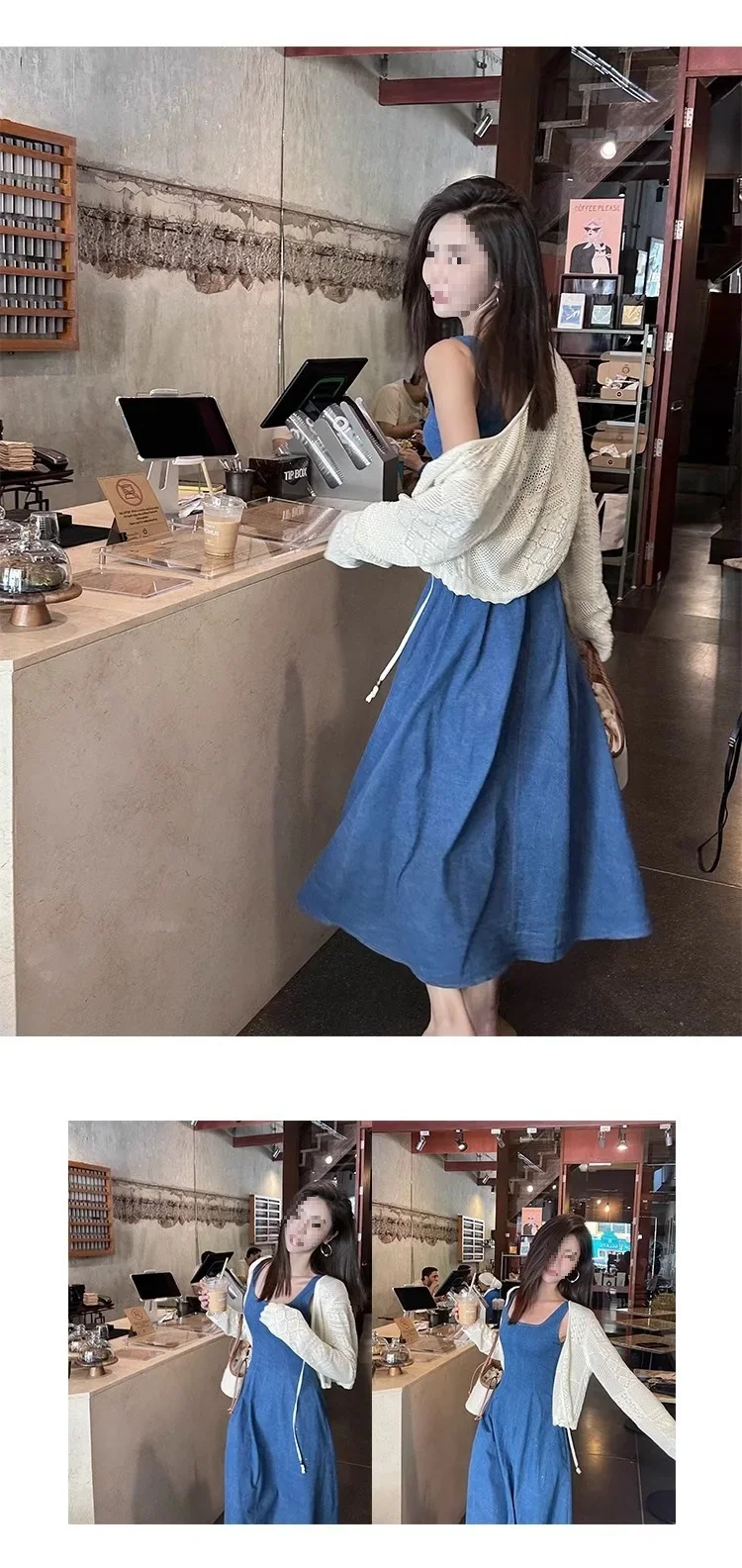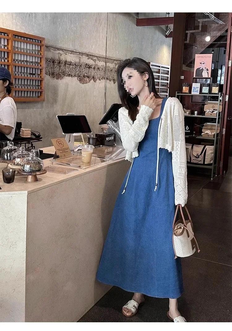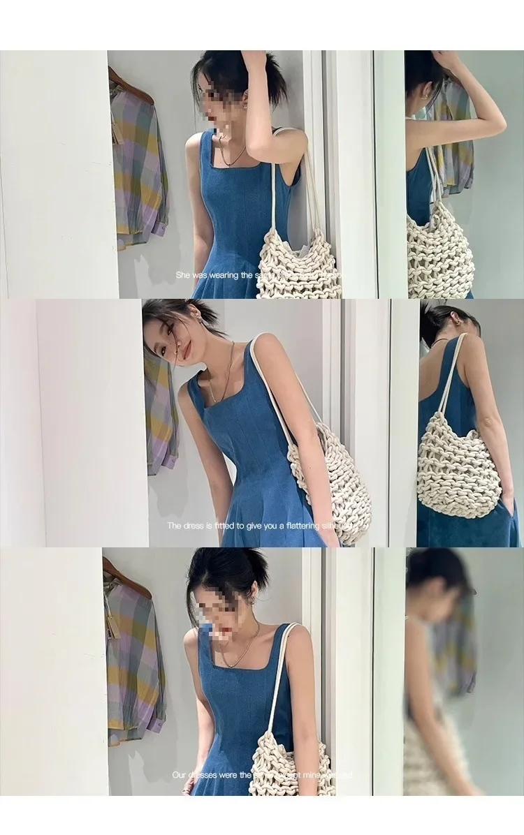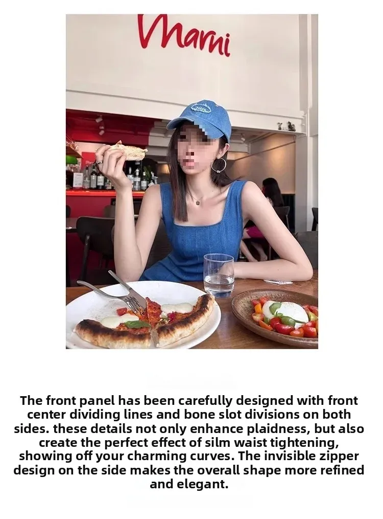 • Design im französischen Stil:Genießen Sie Eleganz mit diesem Jeanskleid im französischen Stil, das über ein einzigartiges Xia Xiaozhong-Design verfügt, das ein Gefühl der Taillentemperatur ausstrahlt.