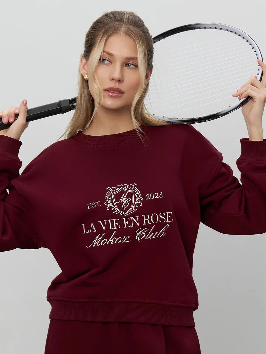 Bornladies Embroidered Hoodie Pants 2-piece Set Autumn New Casual Pants Women's O-neck Pullover Hoodie Suit