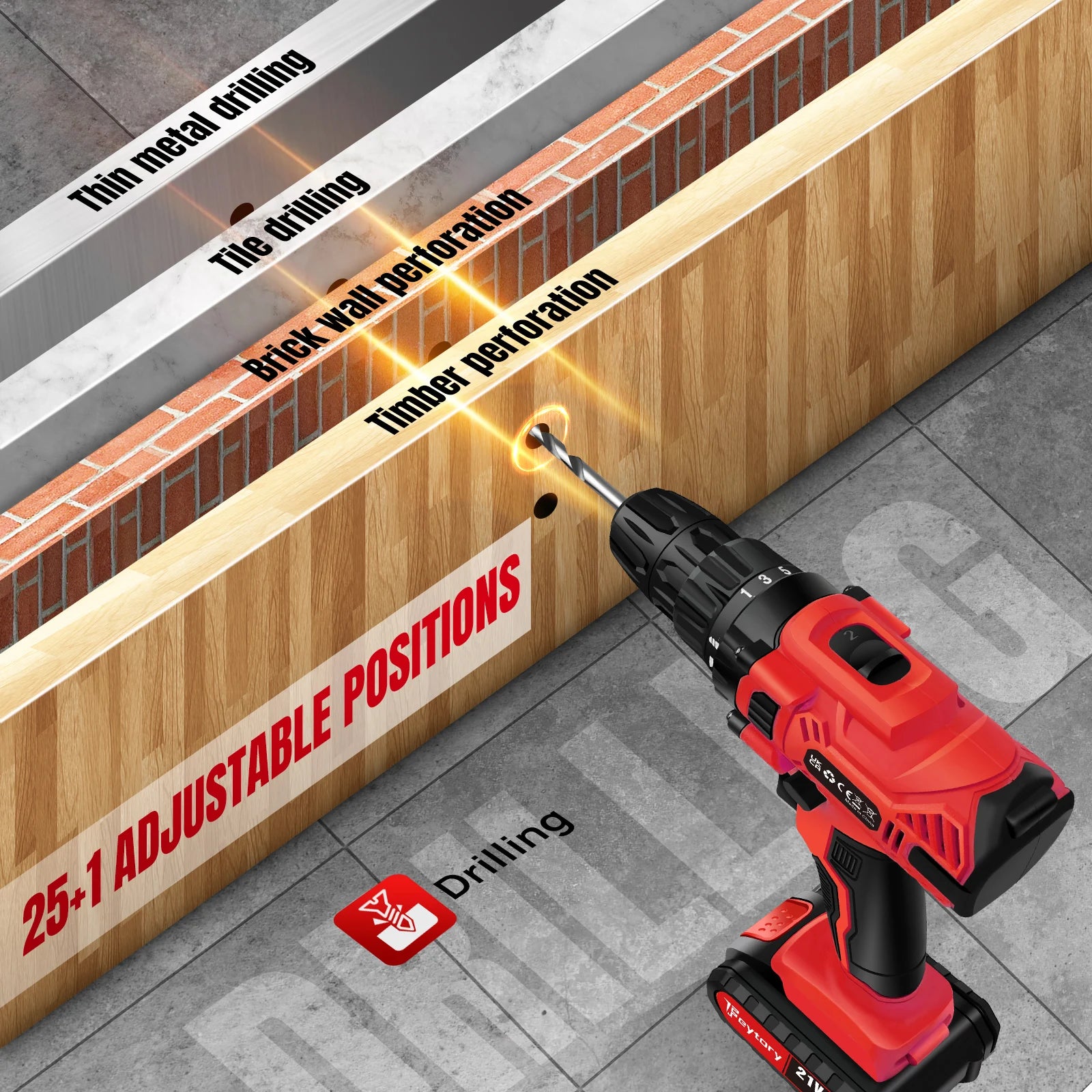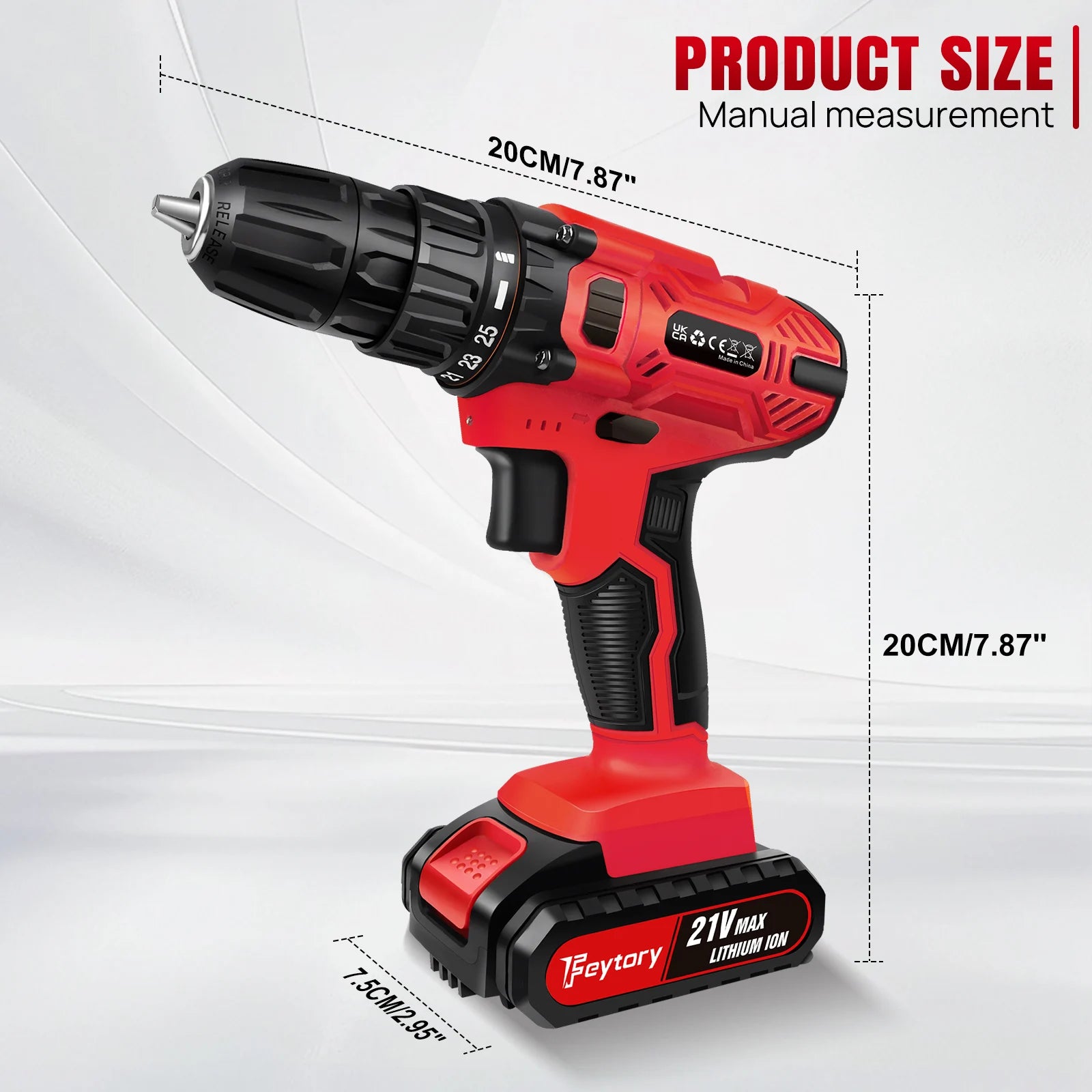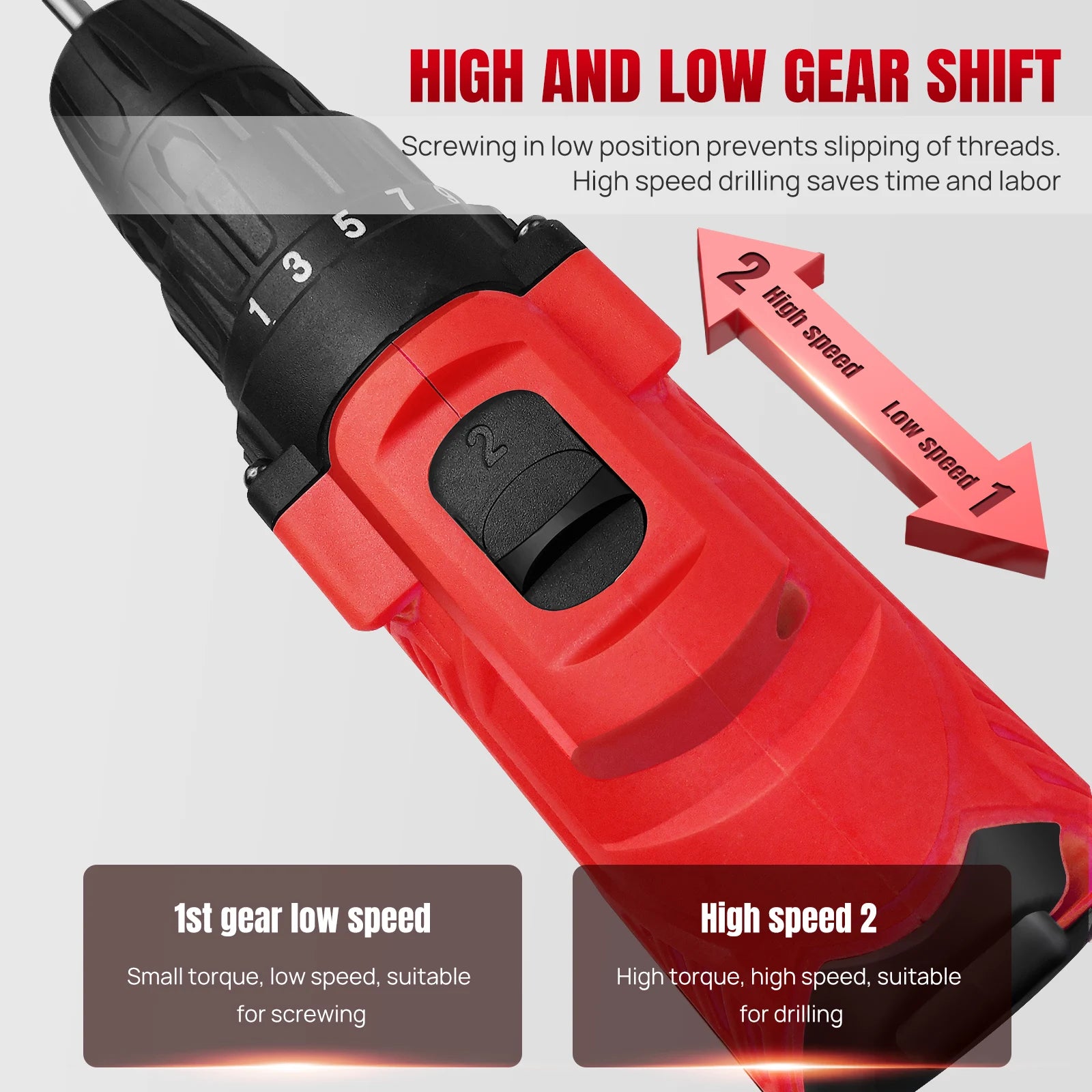 BRIEFNESS 21 V Akku-Bohrschrauber, 45 Nm, Elektroschrauber, Schnellspannbohrfutter, 2 Gänge, Geschwindigkeit, kabelloses Power-Treiber-Set mit Tragebox