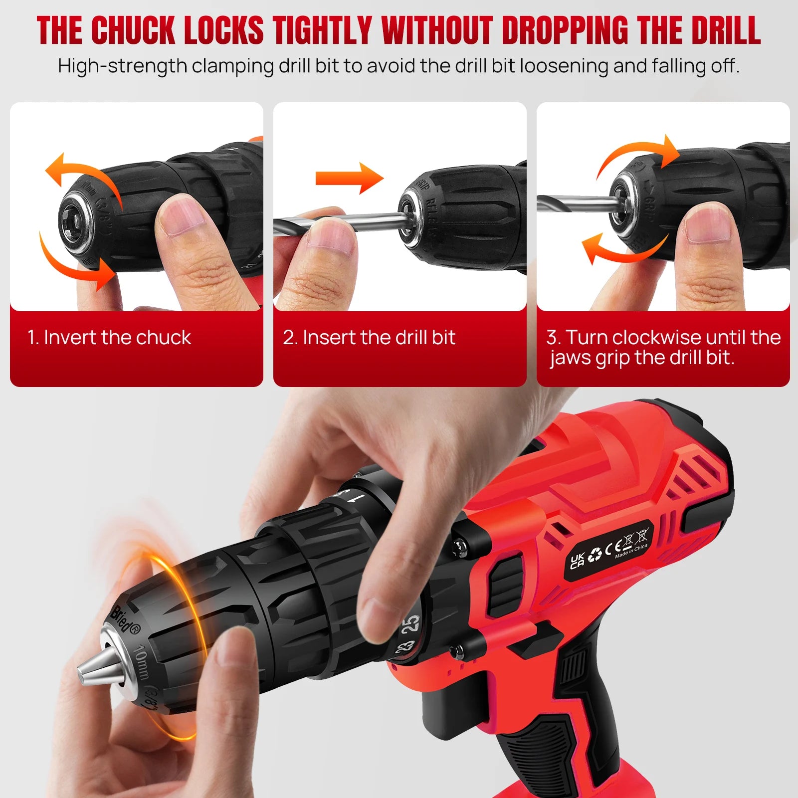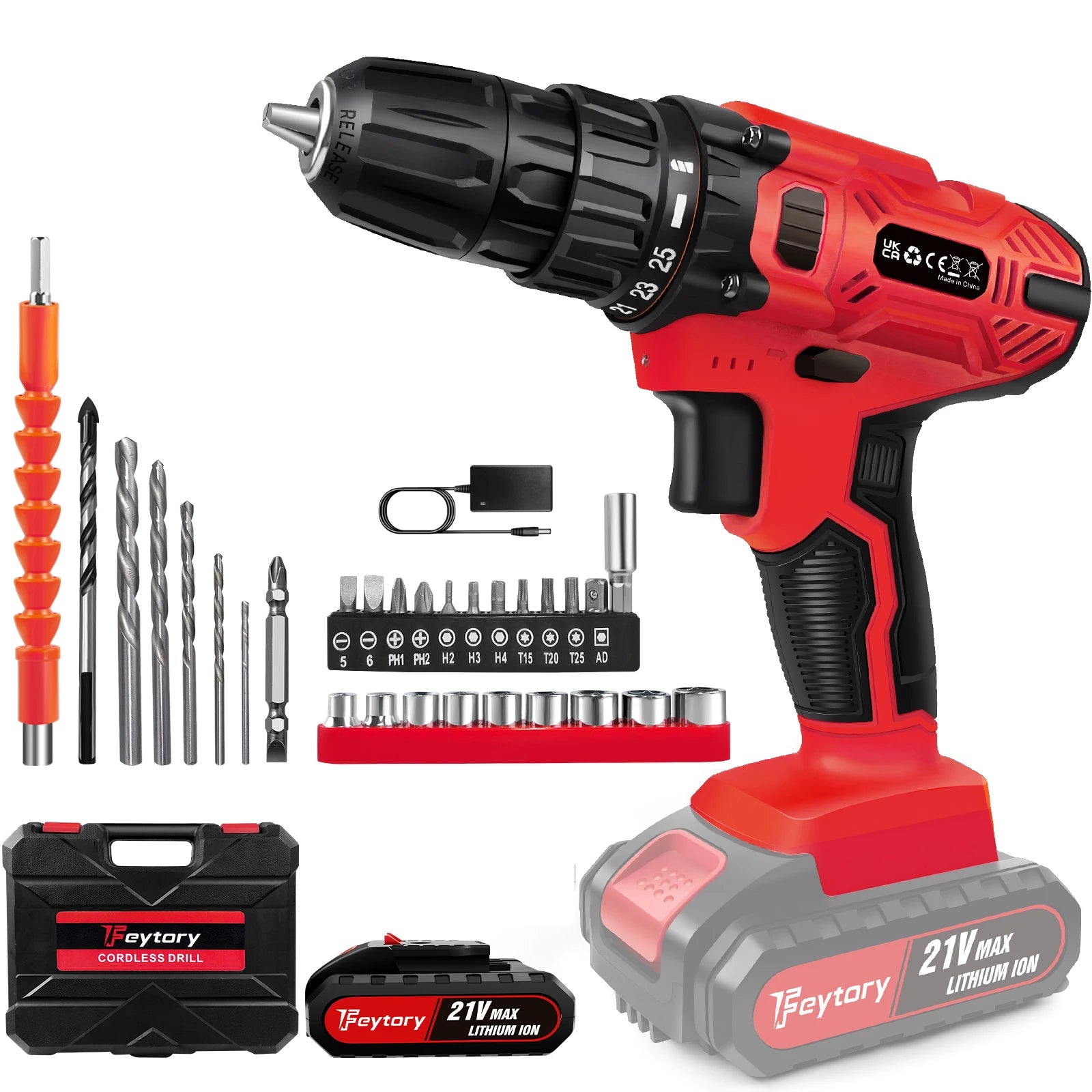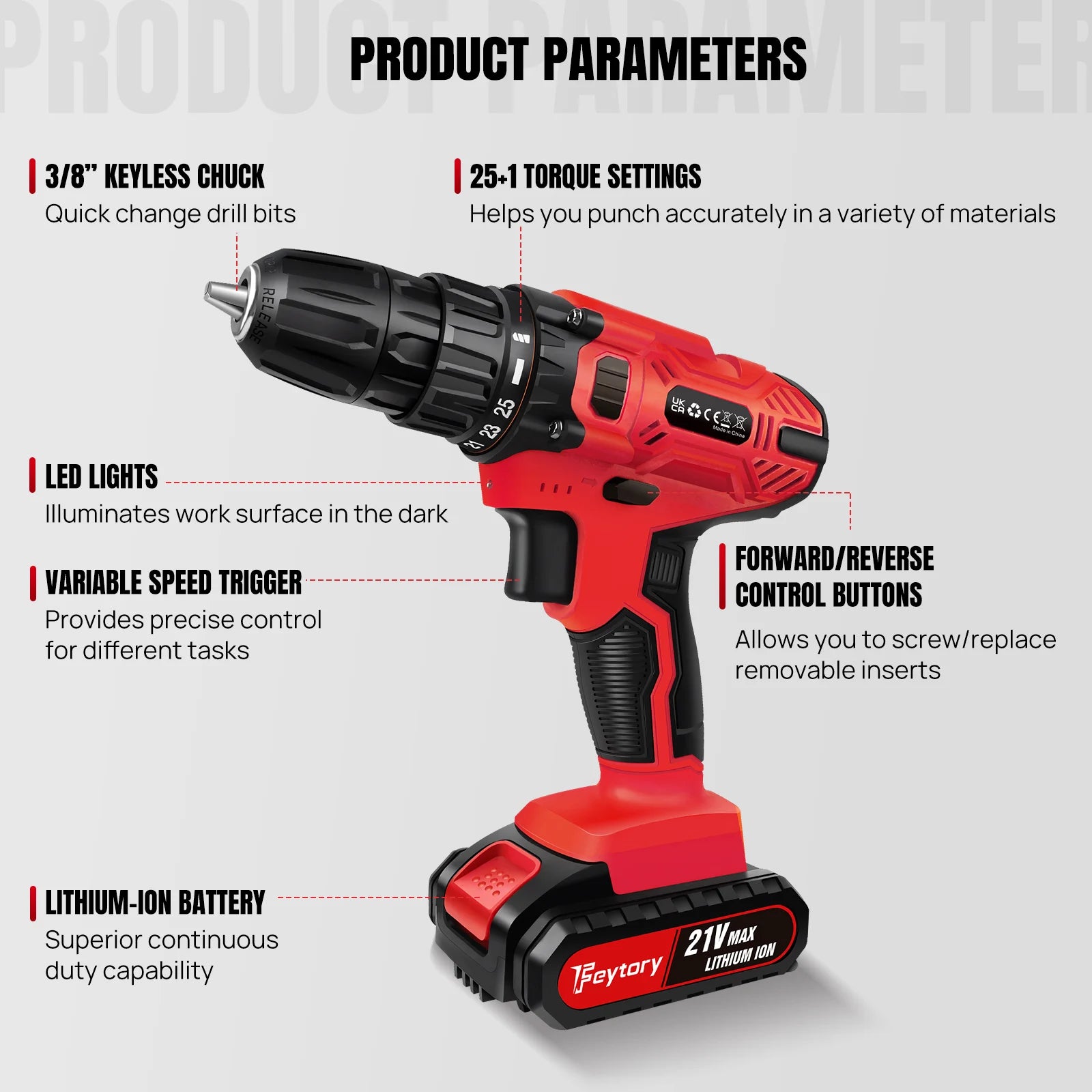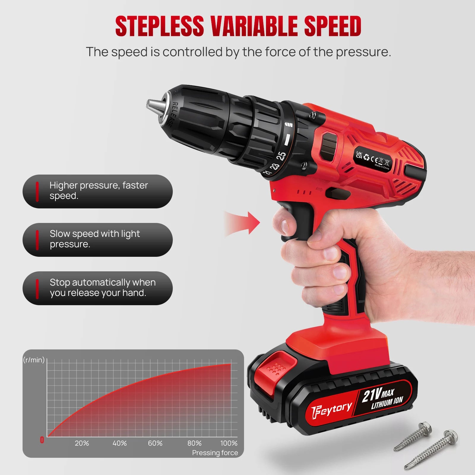 BRIEFNESS 21 V Akku-Bohrschrauber, 45 Nm, Elektroschrauber, Schnellspannbohrfutter, 2 Gänge, Geschwindigkeit, kabelloses Power-Treiber-Set mit Tragebox
