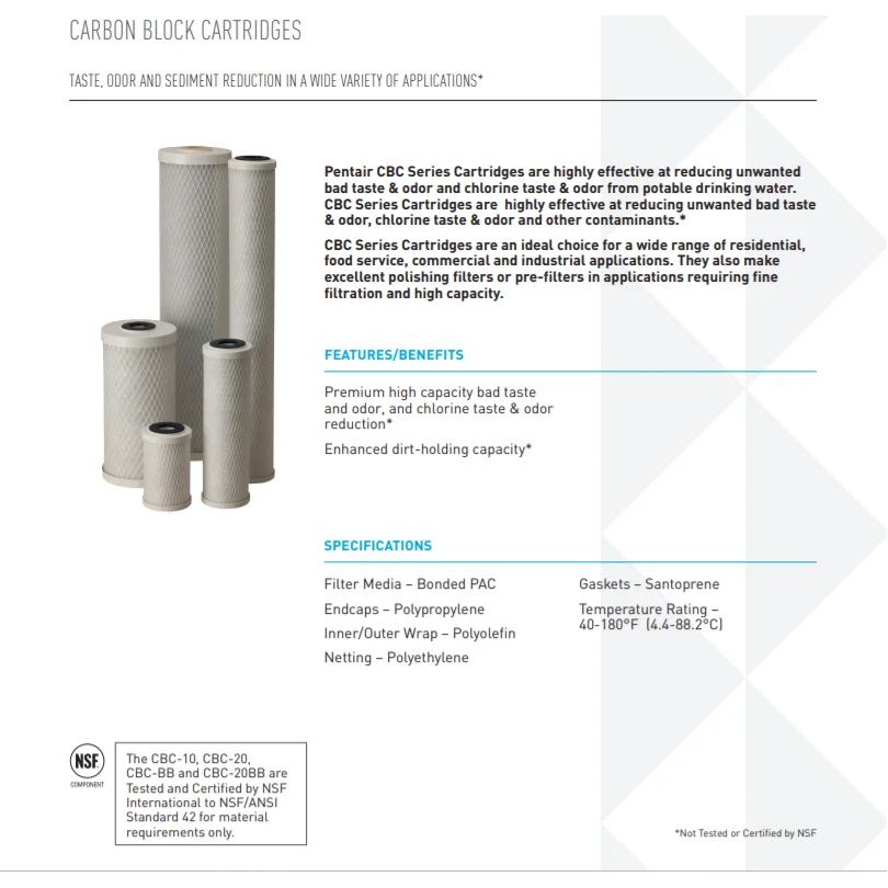 CBC Carbon Block Filter Cartridge 10 inch Water Filter Cartridge CBC-10
