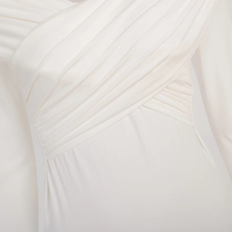 Chic Sexy Criss-cross Pleated Slash Neck Slim Fit Solid Color Basic 2024 Sexy Hot Female Long-sleeves High Waisted Bodysuit Tops