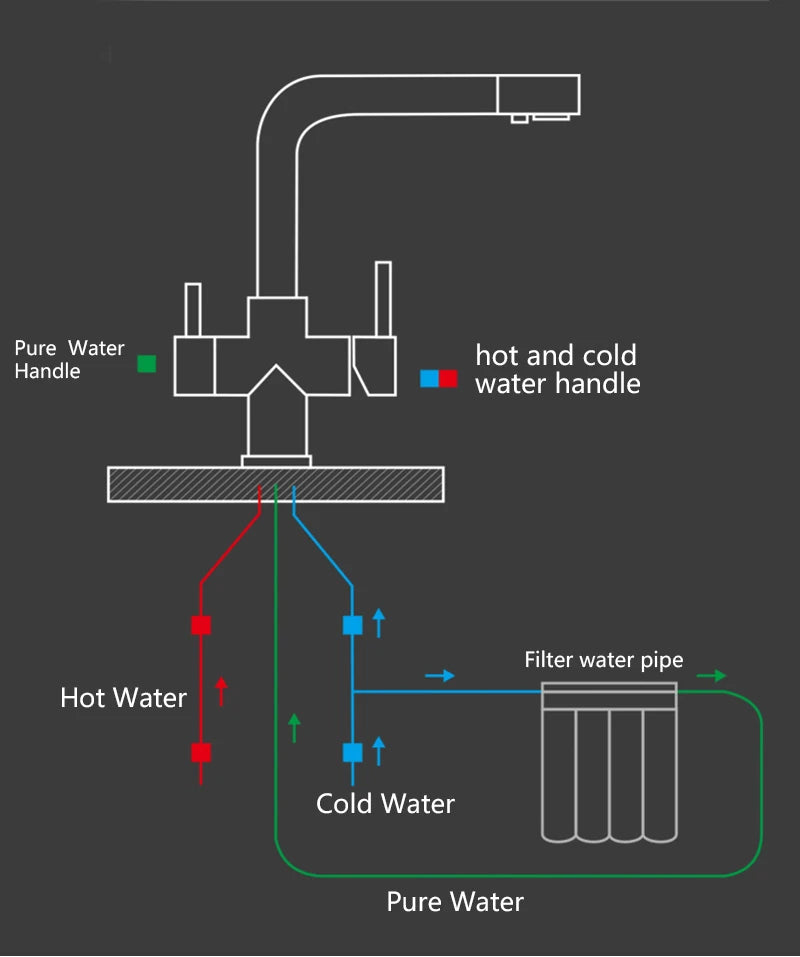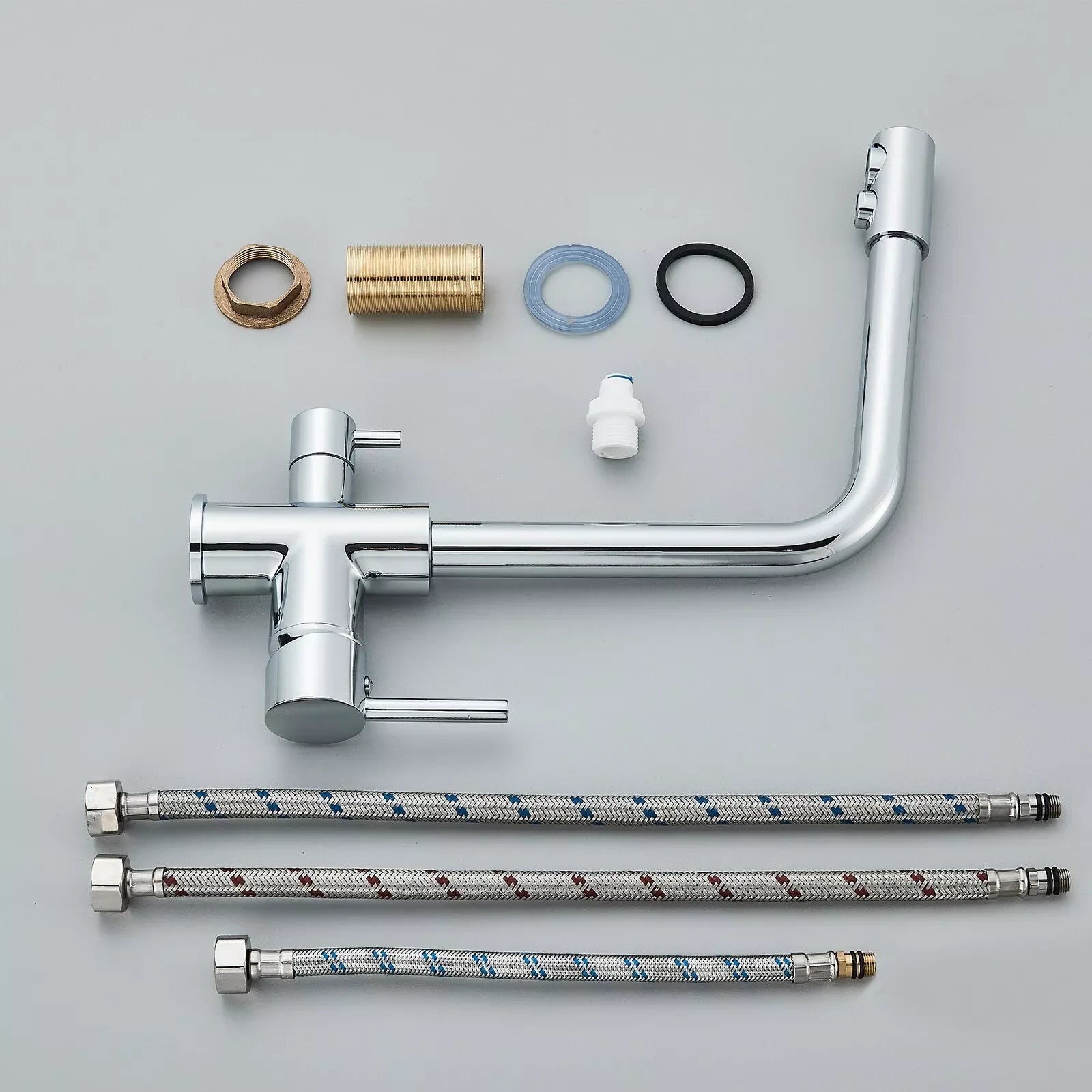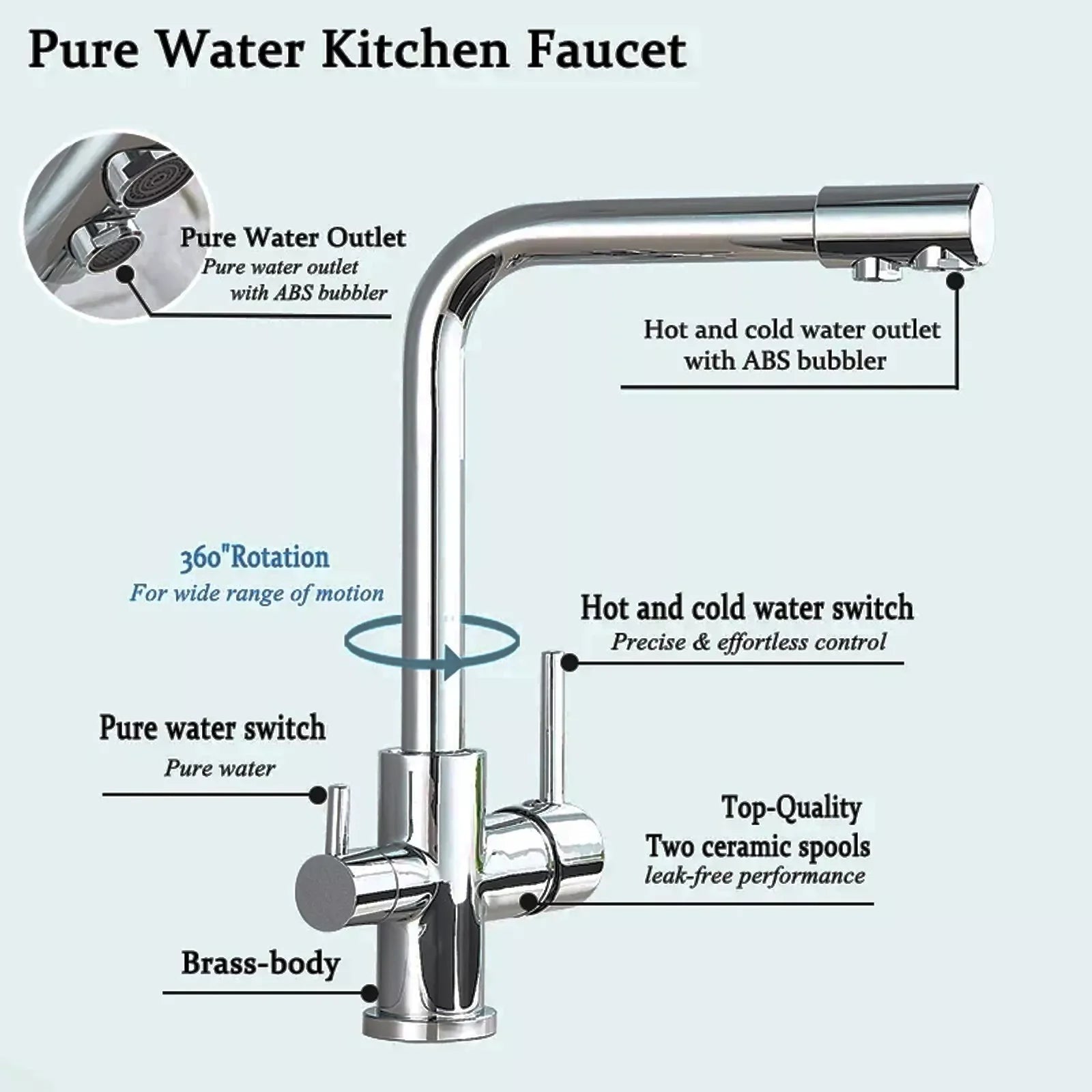 Chrome Brass Pure Water Kitchen Faucet Dual Handle Hot and Cold Drinking Water 3-way Filter Kitchen Purified Mixer Taps