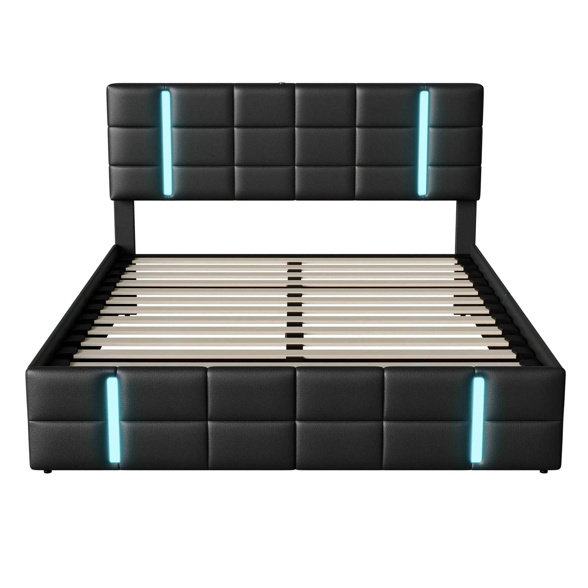 Comanlai 140 x 200 cm gepolstertes Bett, Doppelbett mit USB-Ladeanschluss und LED-Licht, hydraulisches Bett mit Stauraum und Lattenrost, PU