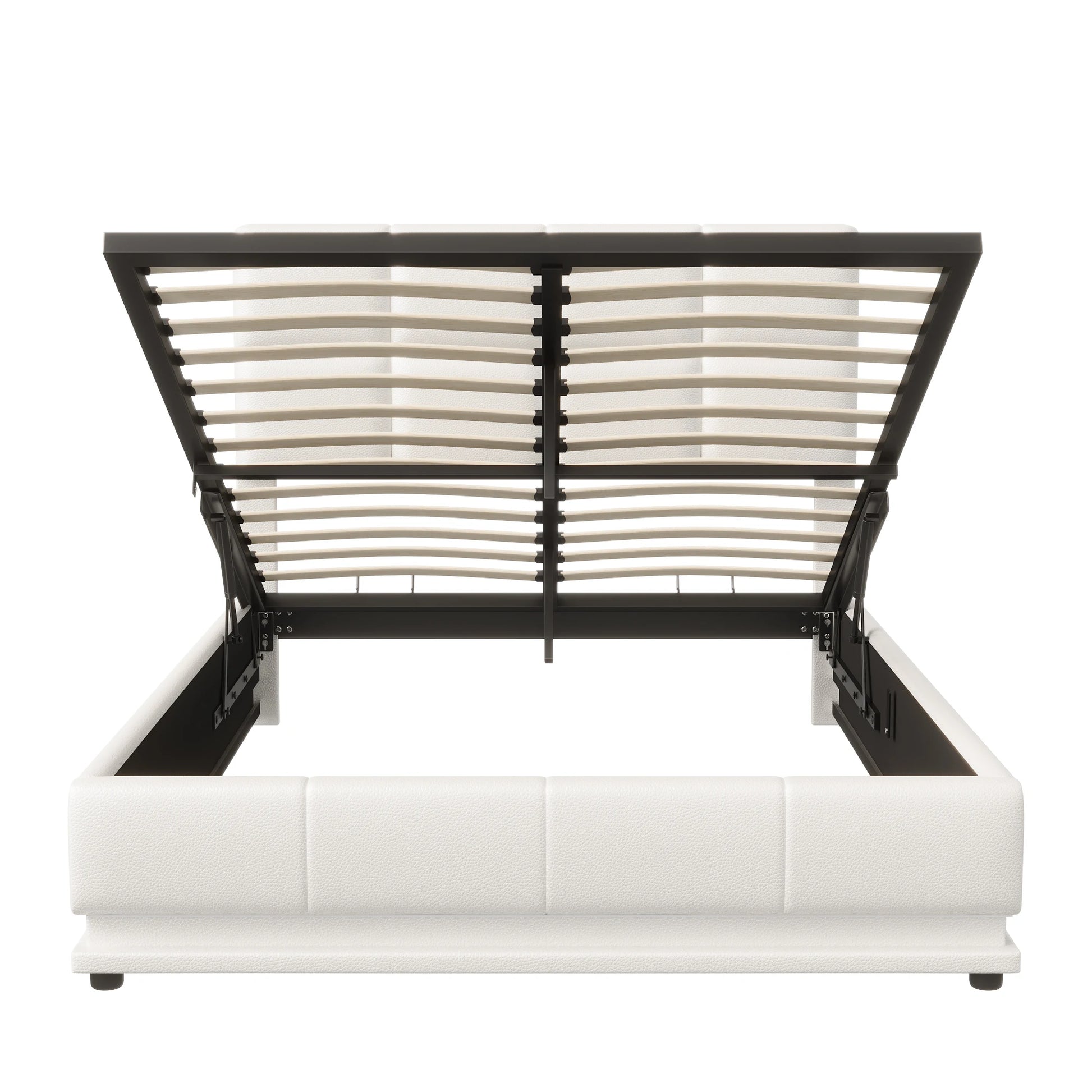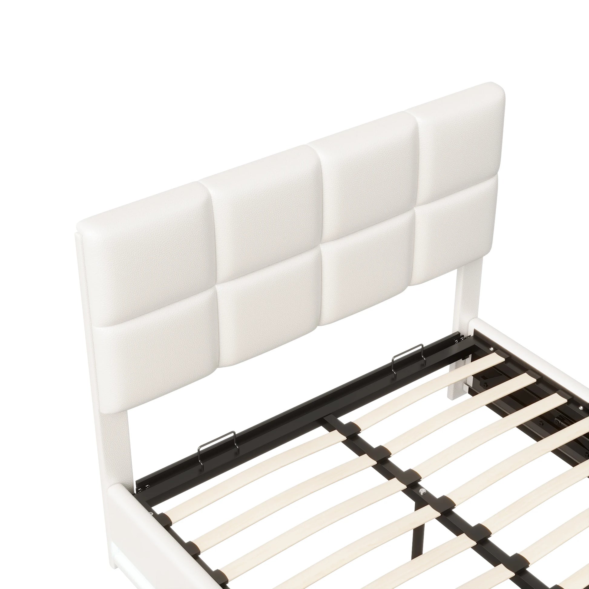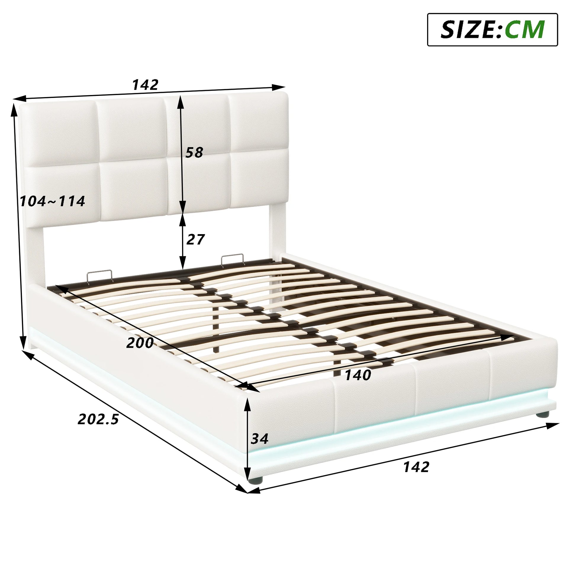 Comanlai Polsterbett 140 x 200 cm mit LED-Leuchten, hydraulisches Bett mit Stauraum, Doppelbett mit Lattenrost, Kunstleder, weiß