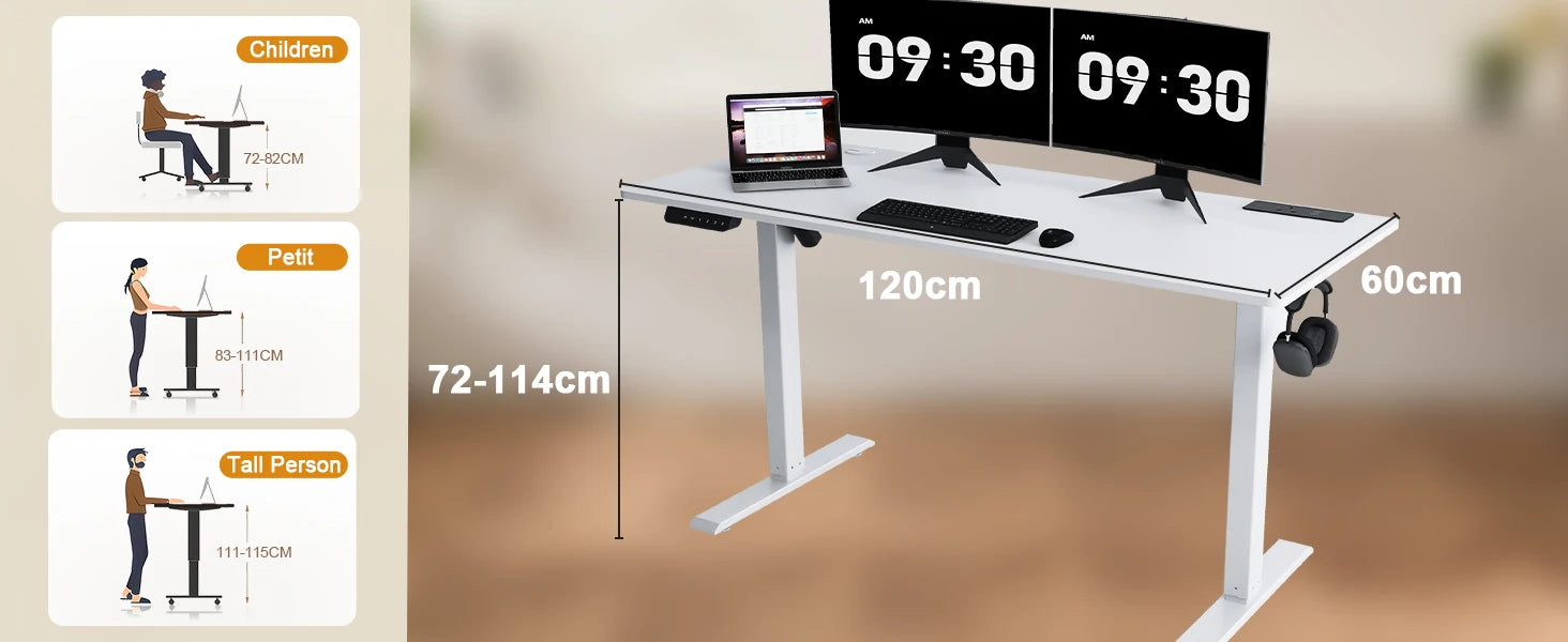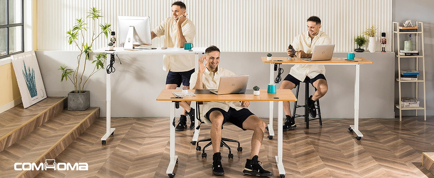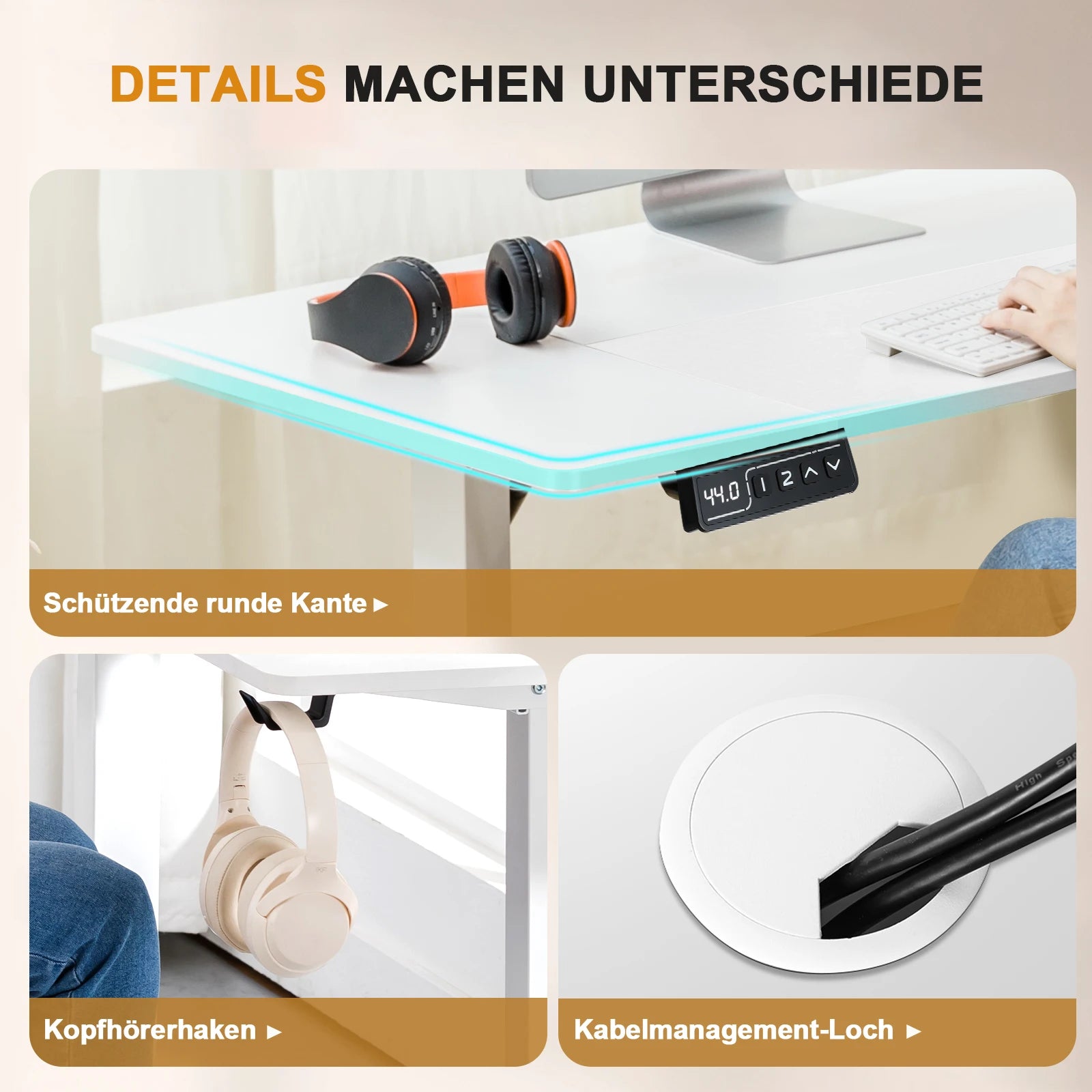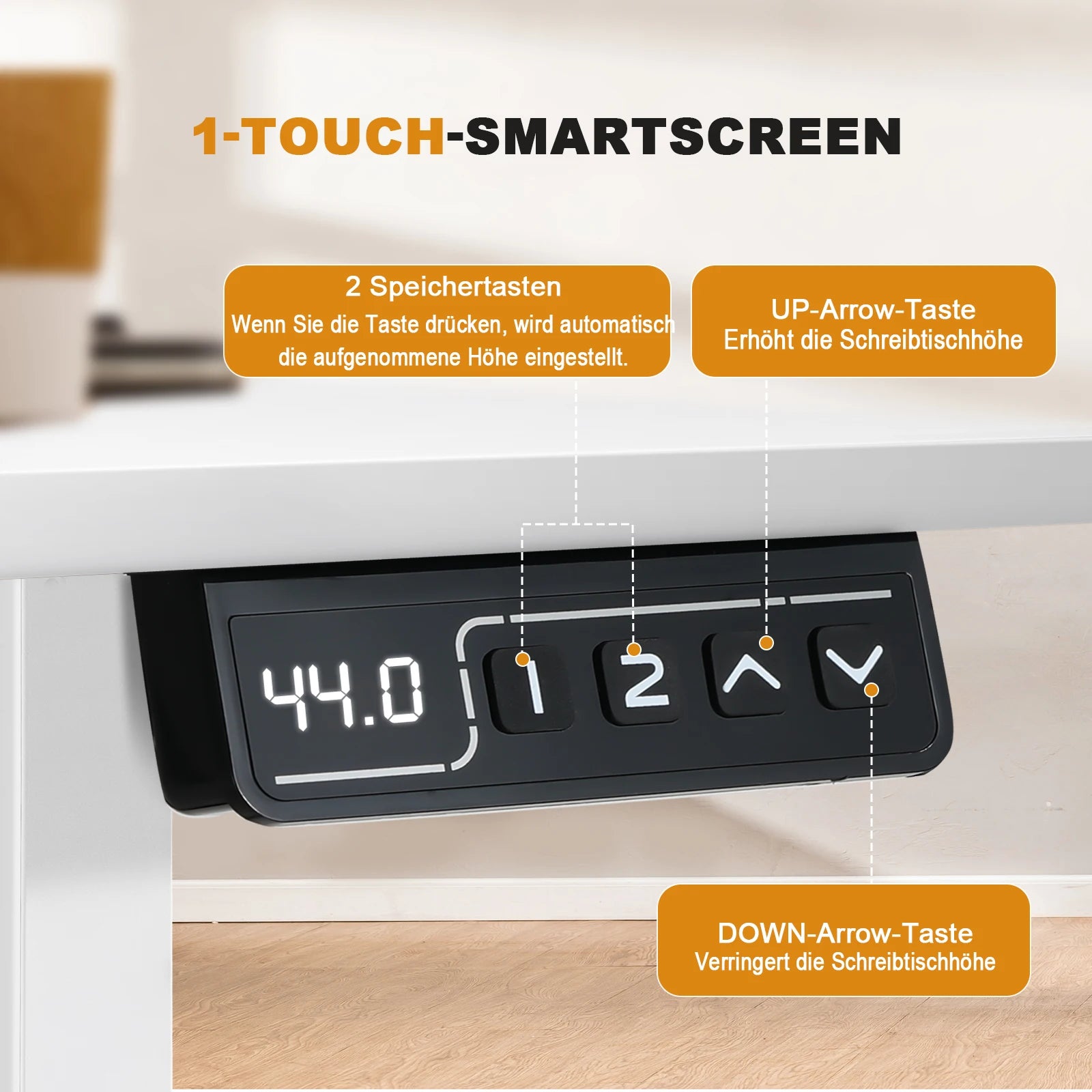 COMHOMA Höhenverstellbarer Schreibtisch mit USB-Buchse und Haken, Elektrisch Verstellbarer Computertisch, Steh-Sitztisch