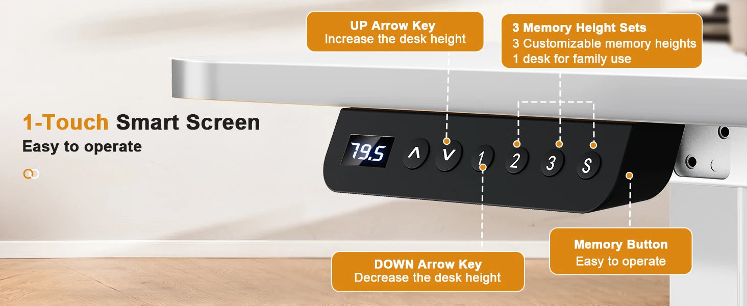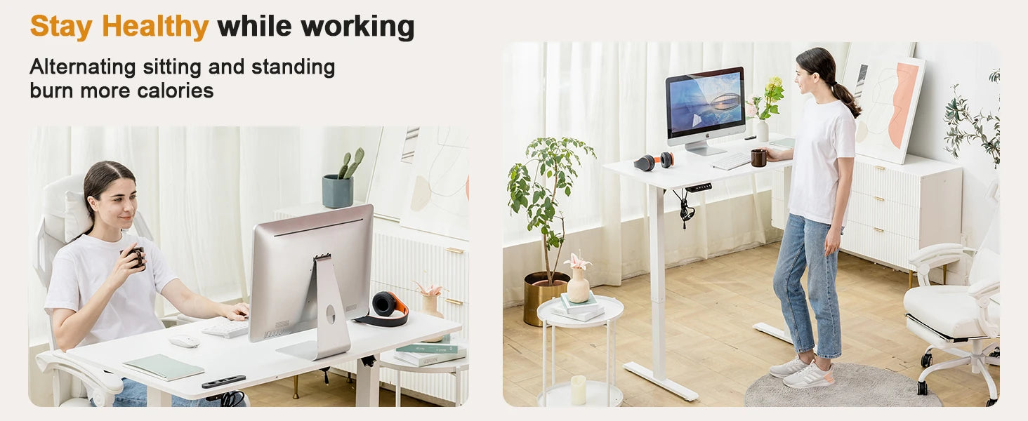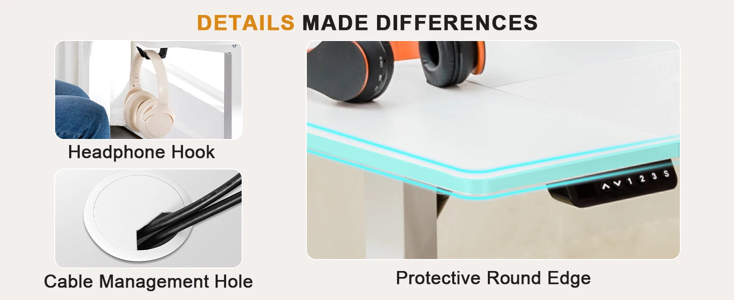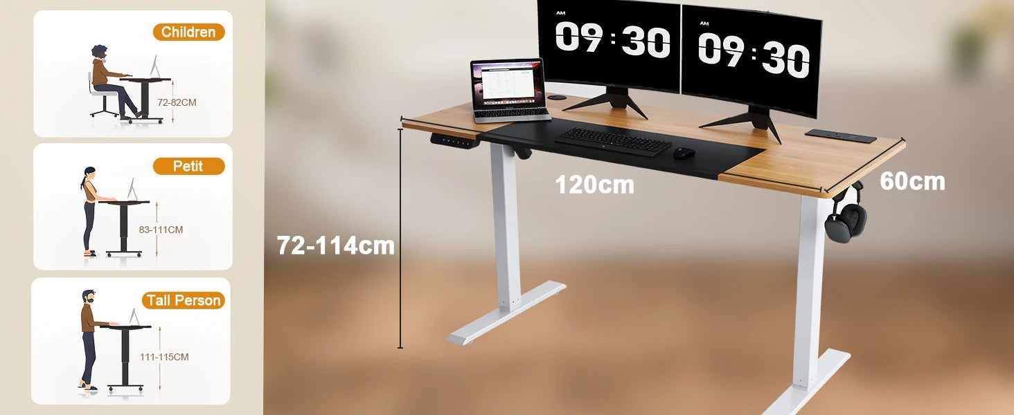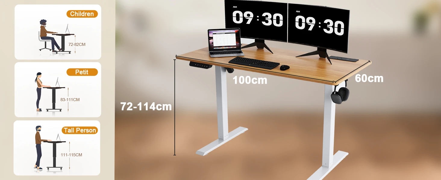 COMHOMA Höhenverstellbarer Schreibtisch mit USB-Buchse und Haken, Elektrisch Verstellbarer Computertisch, Steh-Sitztisch