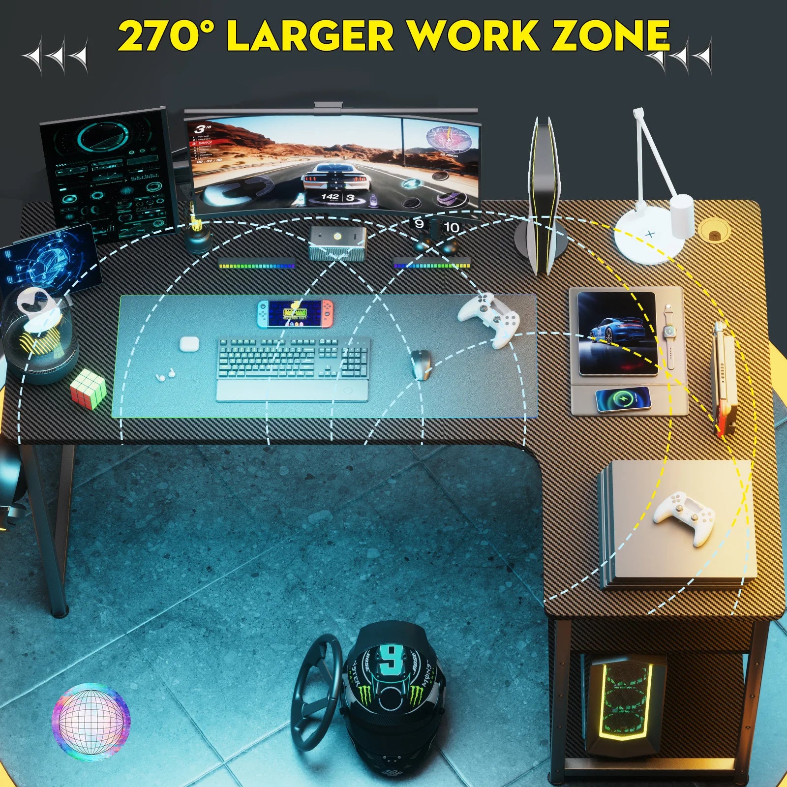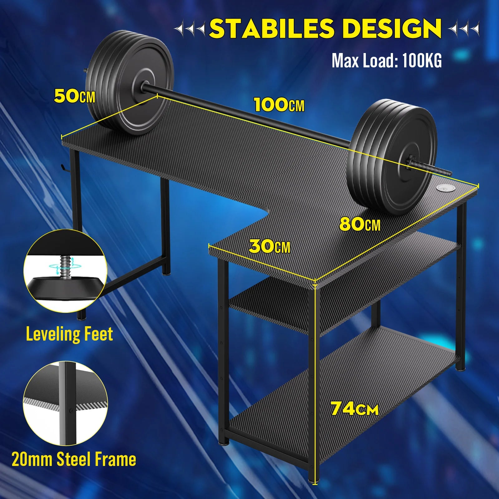COMHOMA Schreibtisch Gaming Tisch mit Regal, Eckschreibtisch 100cm Computertisch L Form, PC Tisch für Büro, Heimbüro
