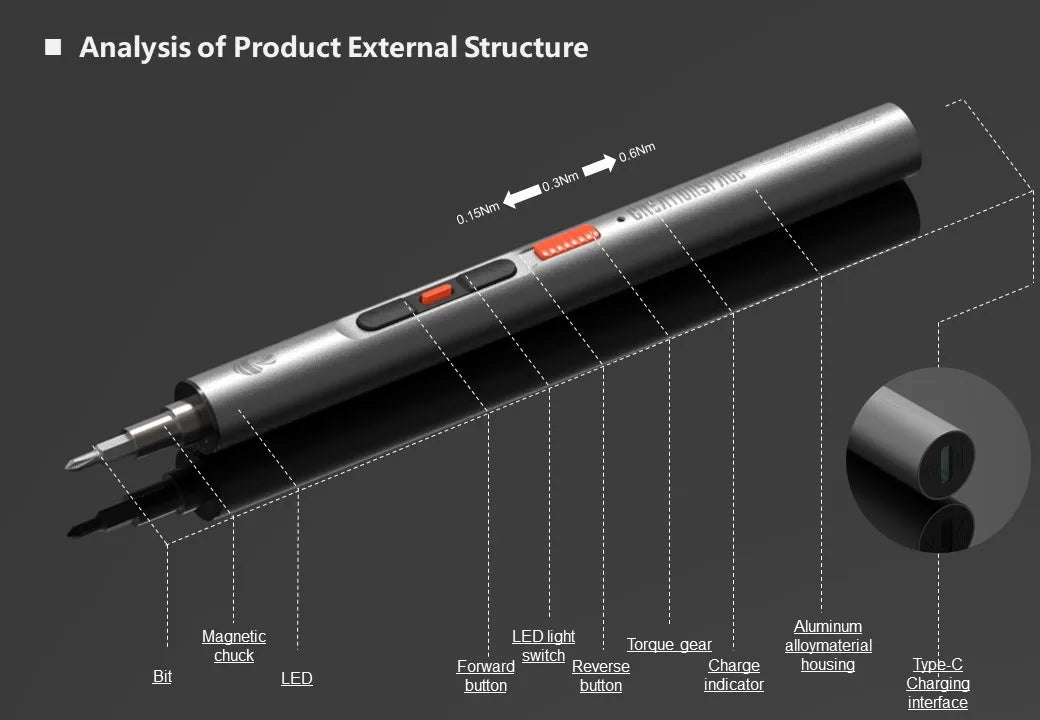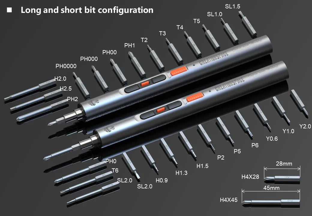 CreationSpace 3,6 V Mini-Elektroschrauber, wiederaufladbarer Schraubendreher-Set mit LED-Licht, 3 Drehmomenteinstellungen, CS0702A, CS701A