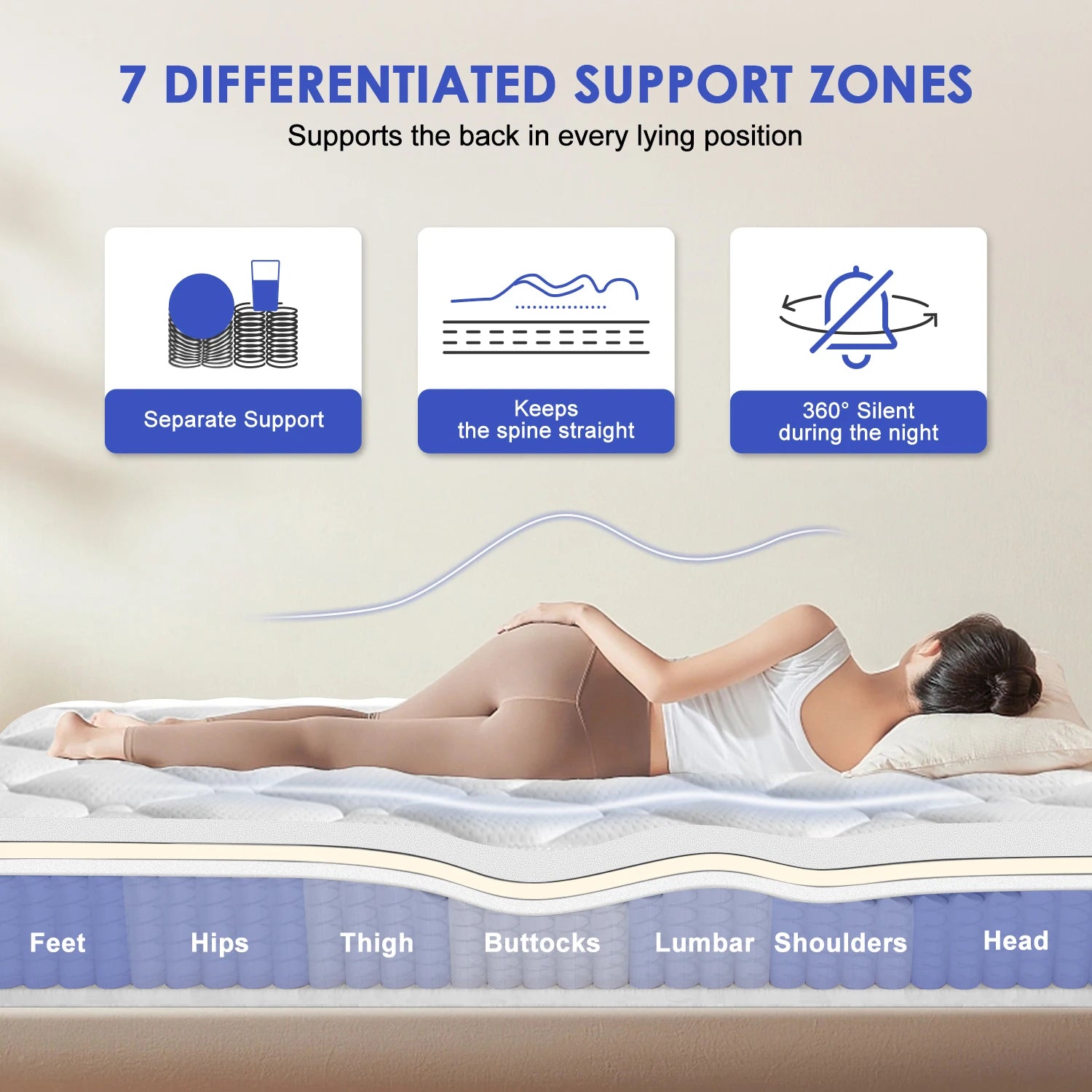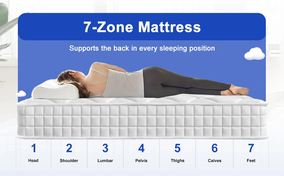 Daccormax 22 cm dicke Federkernmatratze, in mehreren Größen erhältlich, 7 Zonen ergonomisches Design, inklusive Spannbettlaken