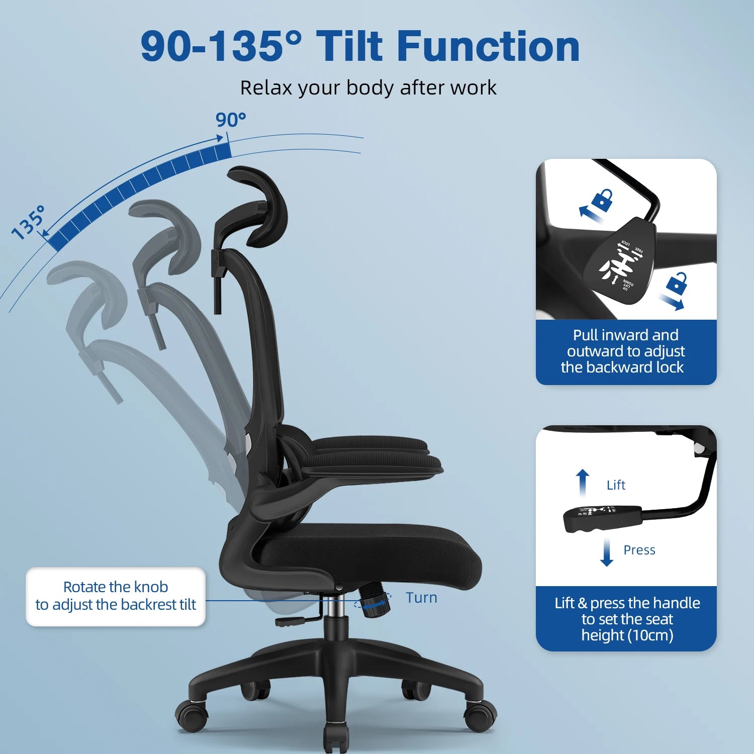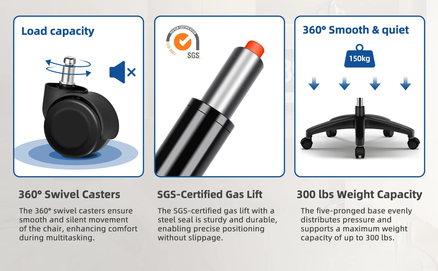 Daccormax Bürostuhl ergonomisch, Schreibtischstuhl, 150 kg Fassungsvermögen, verstellbare Kopfstütze und Armlehnen, Computerstuhl mit Lordosenstütze