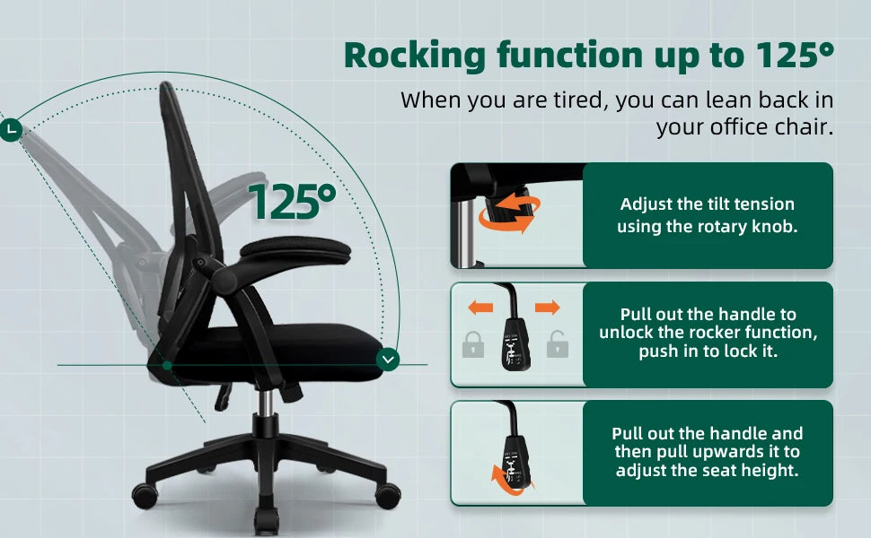 Daccormax Ergonomischer Bürostuhl, verstellbare Lordosenstütze, drehbar, robuste Rollen, gepolsterte Armlehnen, Multi-Neigefunktion zum Entspannen.
