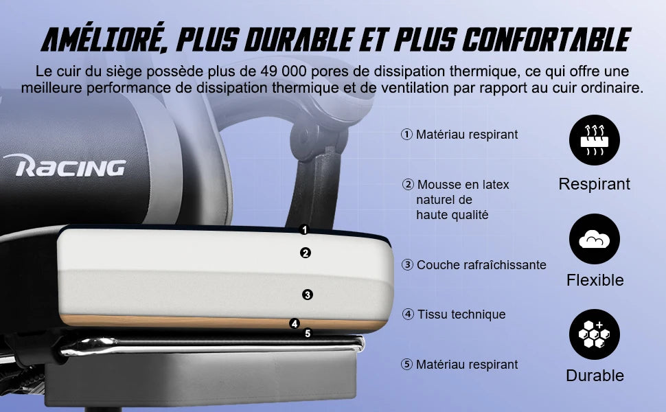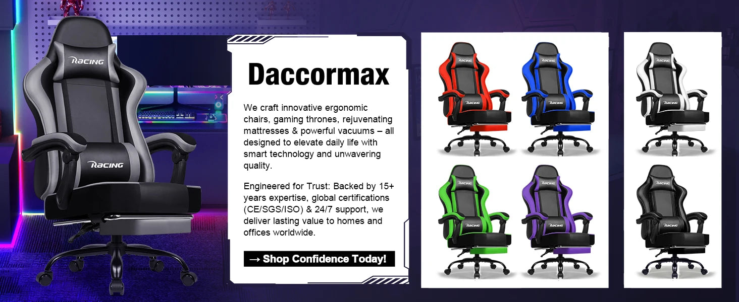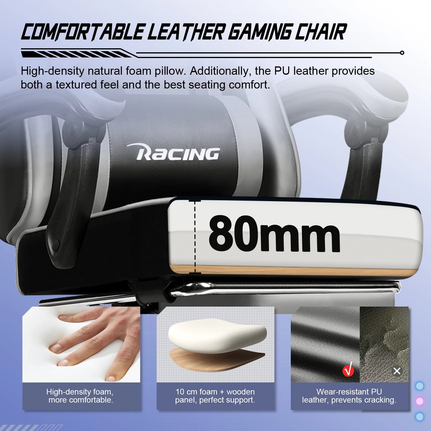 Daccormax Ergonomischer Gaming-Stuhl mit Fußstütze, Liegestuhl 170 ° , Rennstuhl aus PU-Leder mit Lordosenstütze und Kopfstütze
