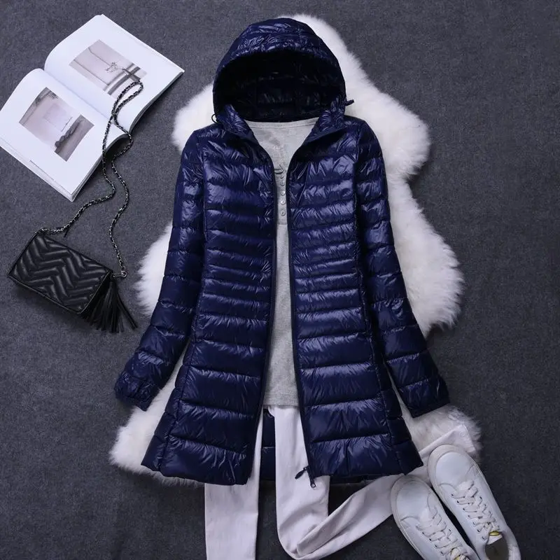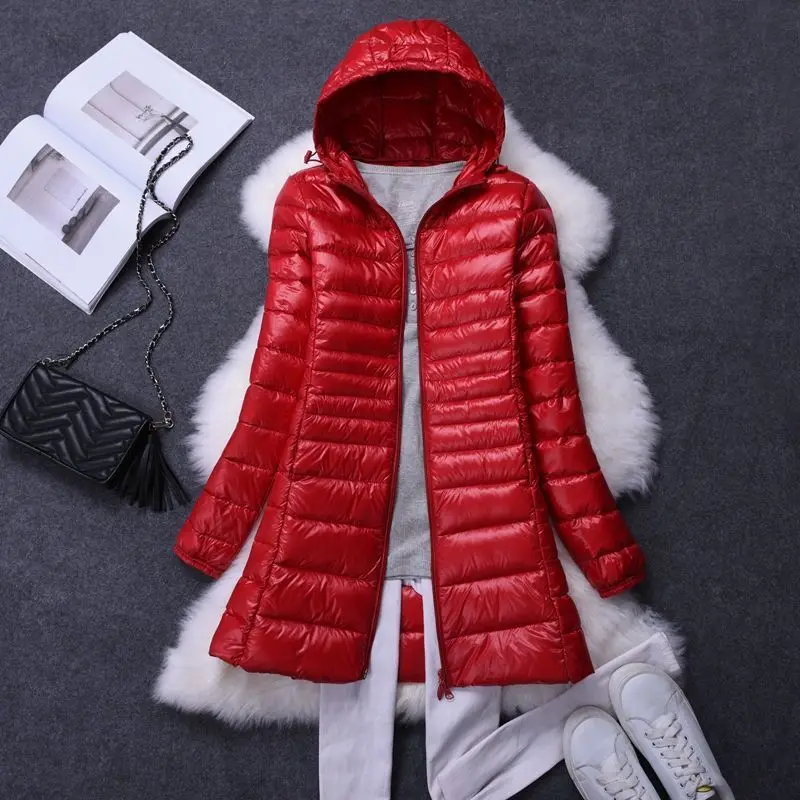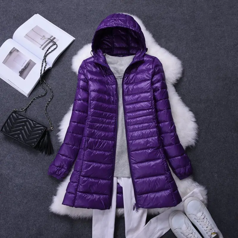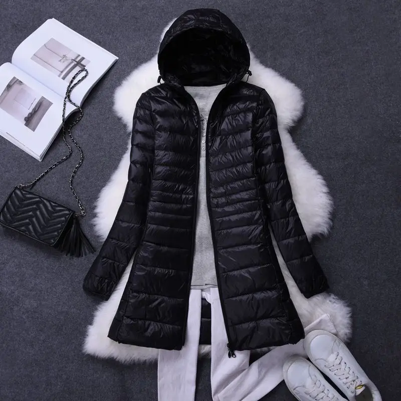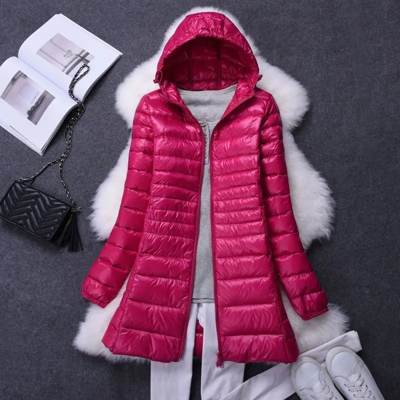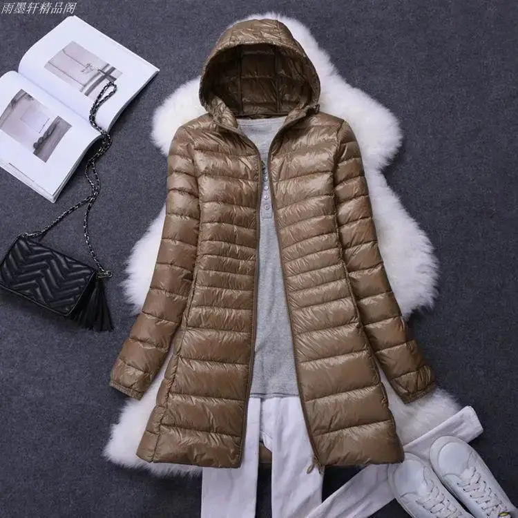 Damenmode, weiße Enten-Wodn-Pufferjacken mit Kapuze, 2025, Neuheiten, weiblich, X-lang, leicht, verstaubar, Daunenmäntel