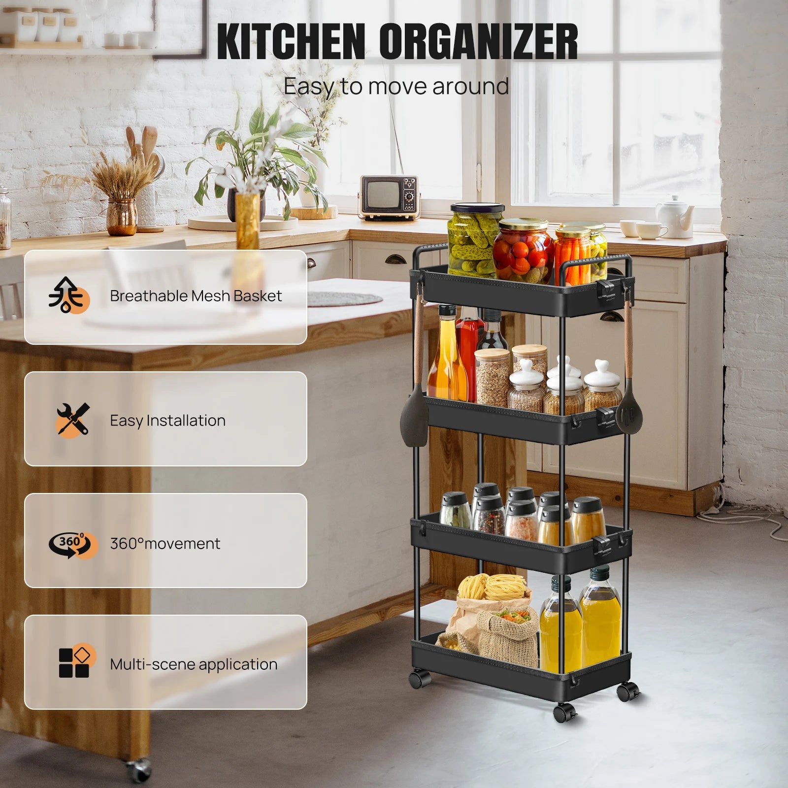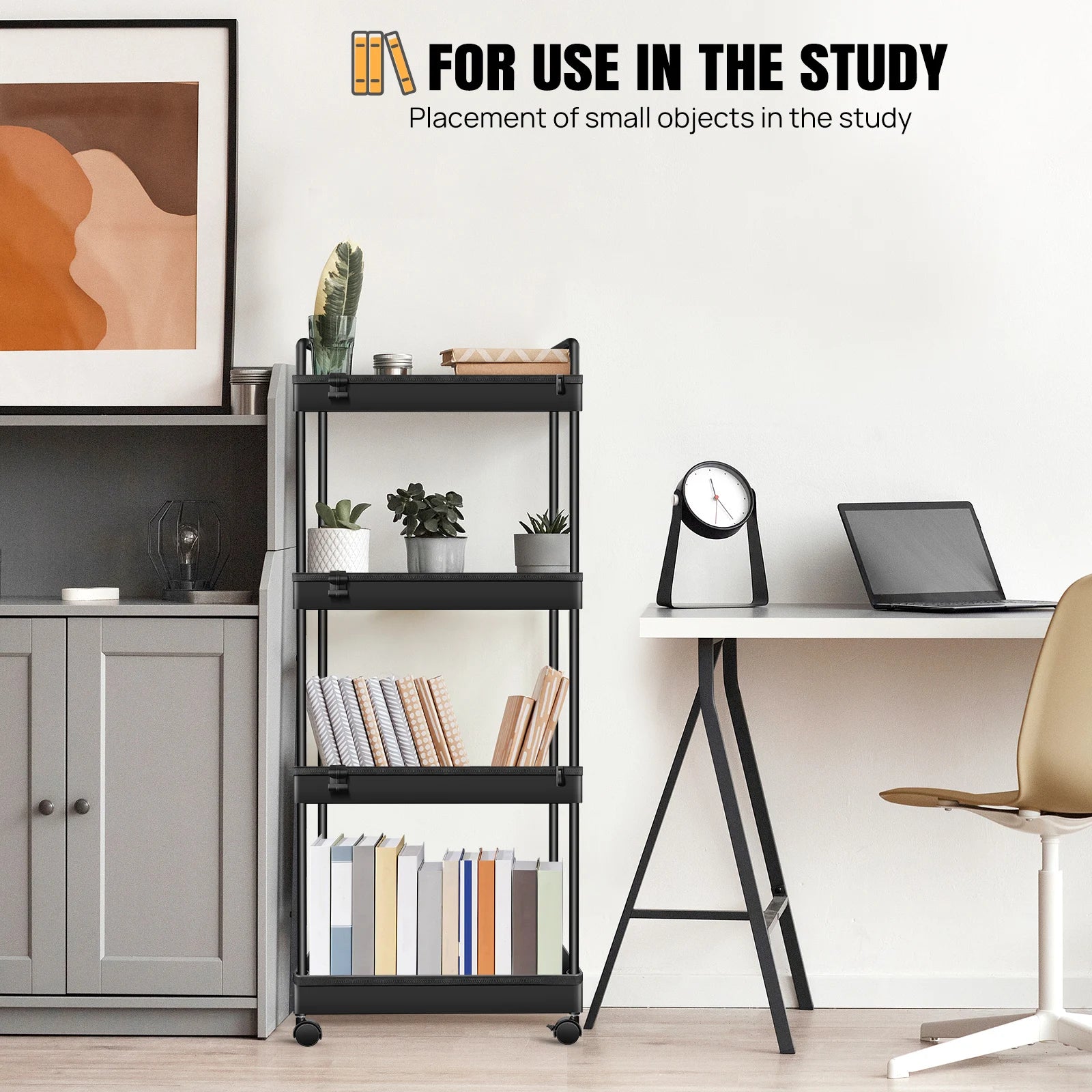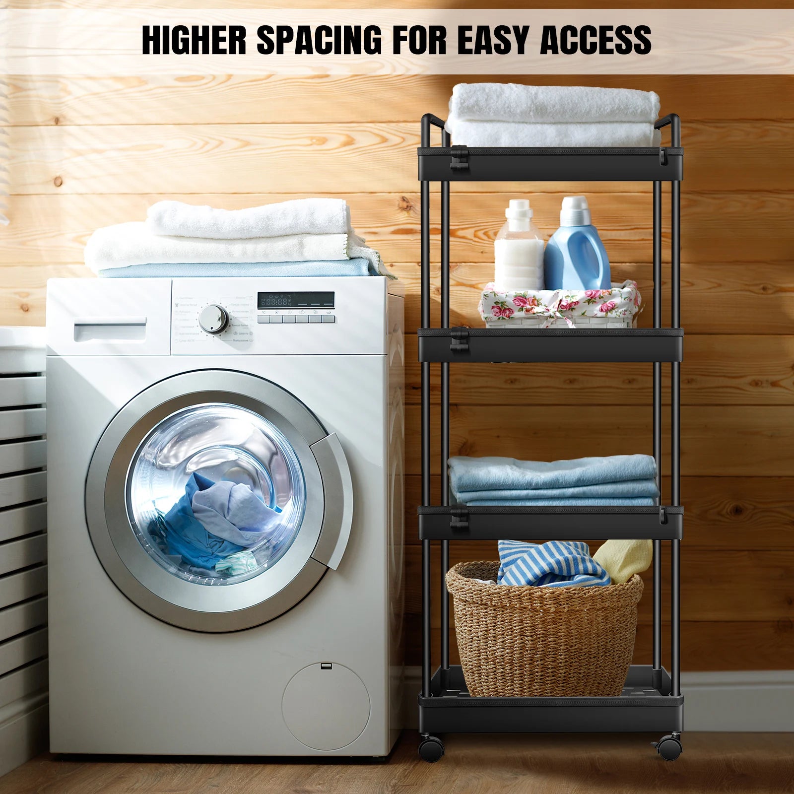 DayPlus Aufbewahrungswagen, 4-stufiger Küchenaufbewahrungswagen auf Rädern, Badezimmerwagen, Mobilitätswagen mit 360 ° Rotationsräder
