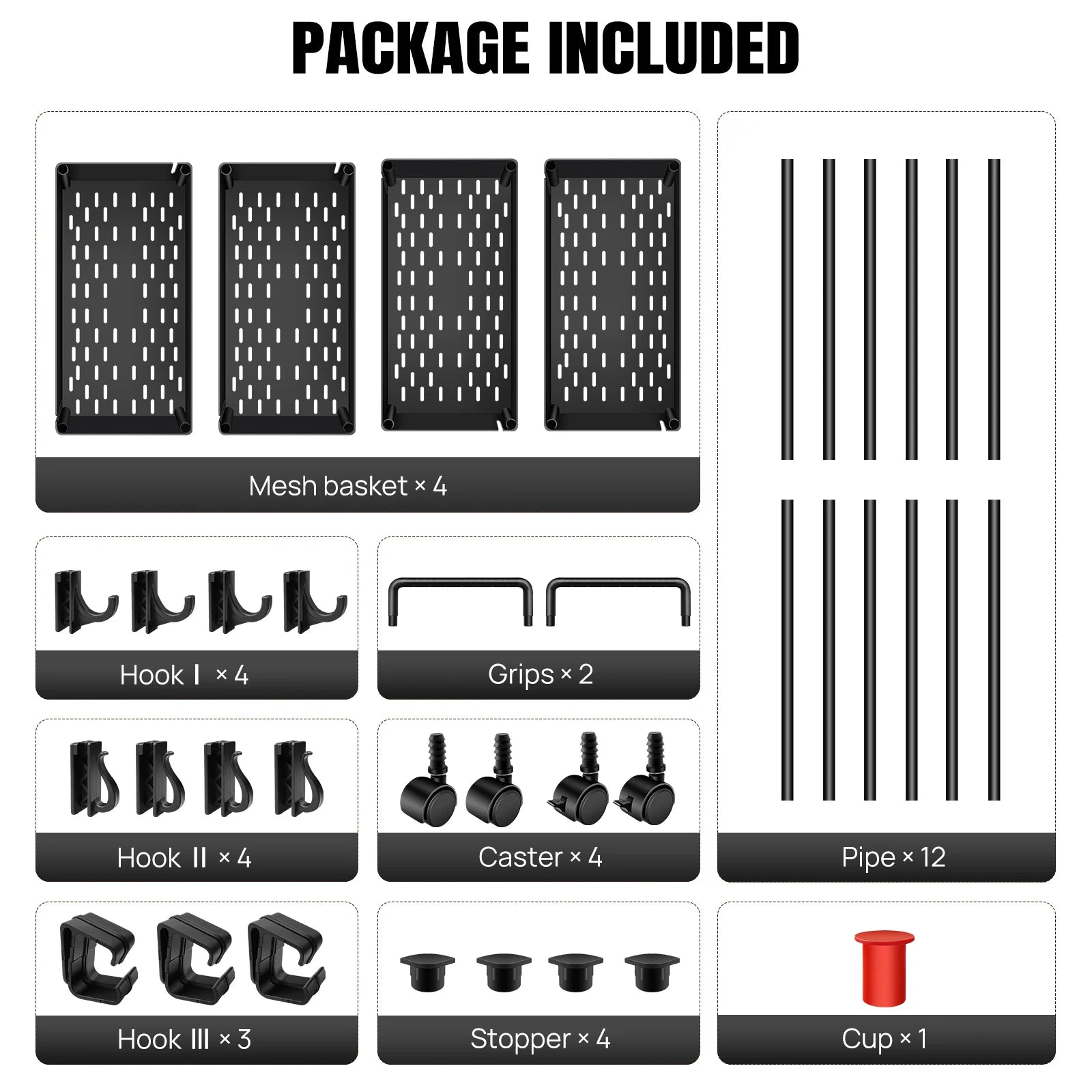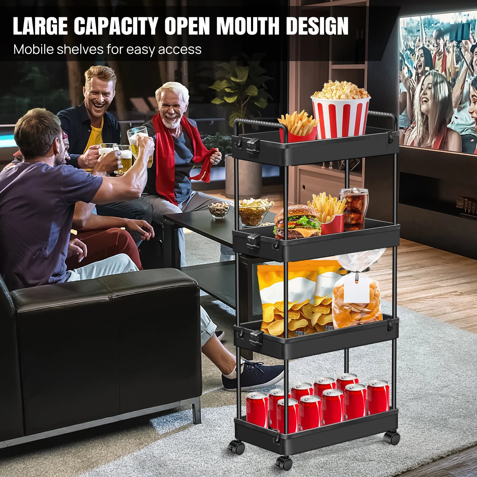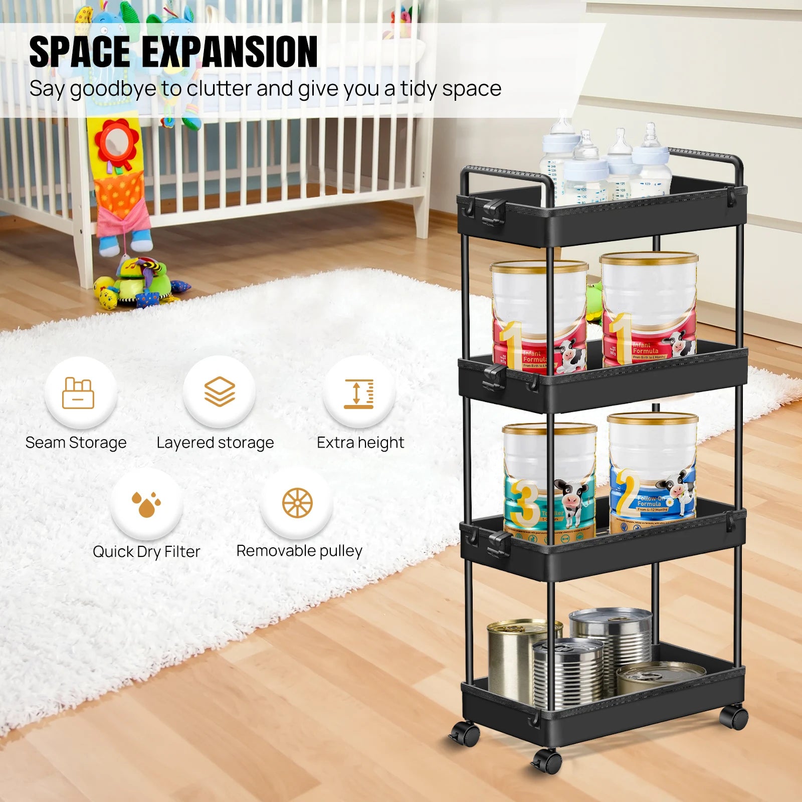 DayPlus Aufbewahrungswagen, 4-stufiger Küchenaufbewahrungswagen auf Rädern, Badezimmerwagen, Mobilitätswagen mit 360 ° Rotationsräder