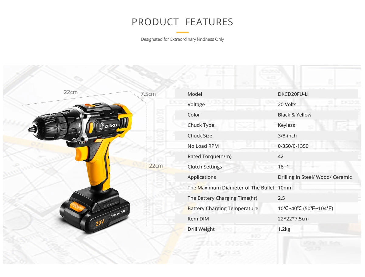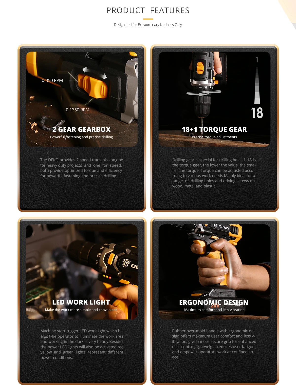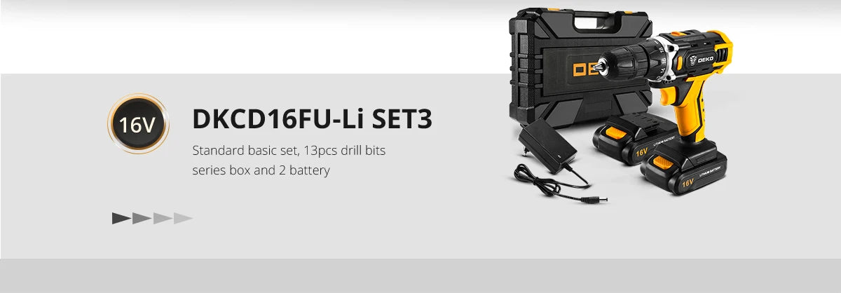 DEKO 12/16/20 V Akku-Bohrschrauber, 2-Gang-Akku, wiederaufladbarer Elektroschrauber, Lithium-Batterie, Kombinationsbox für Elektrowerkzeuge