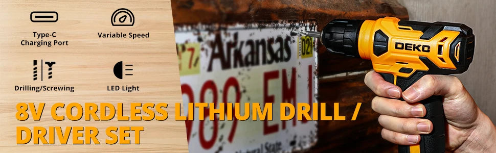 DEKO 126 Stück Elektrowerkzeug-Kombi-Sets, 10 mm, 3/8 Zoll Schnellspannbohrfutter, mit 8 V Akku-Bohrschrauber, professionelle Heim- und Haushalts-DIY-Handwerkzeug-Sets