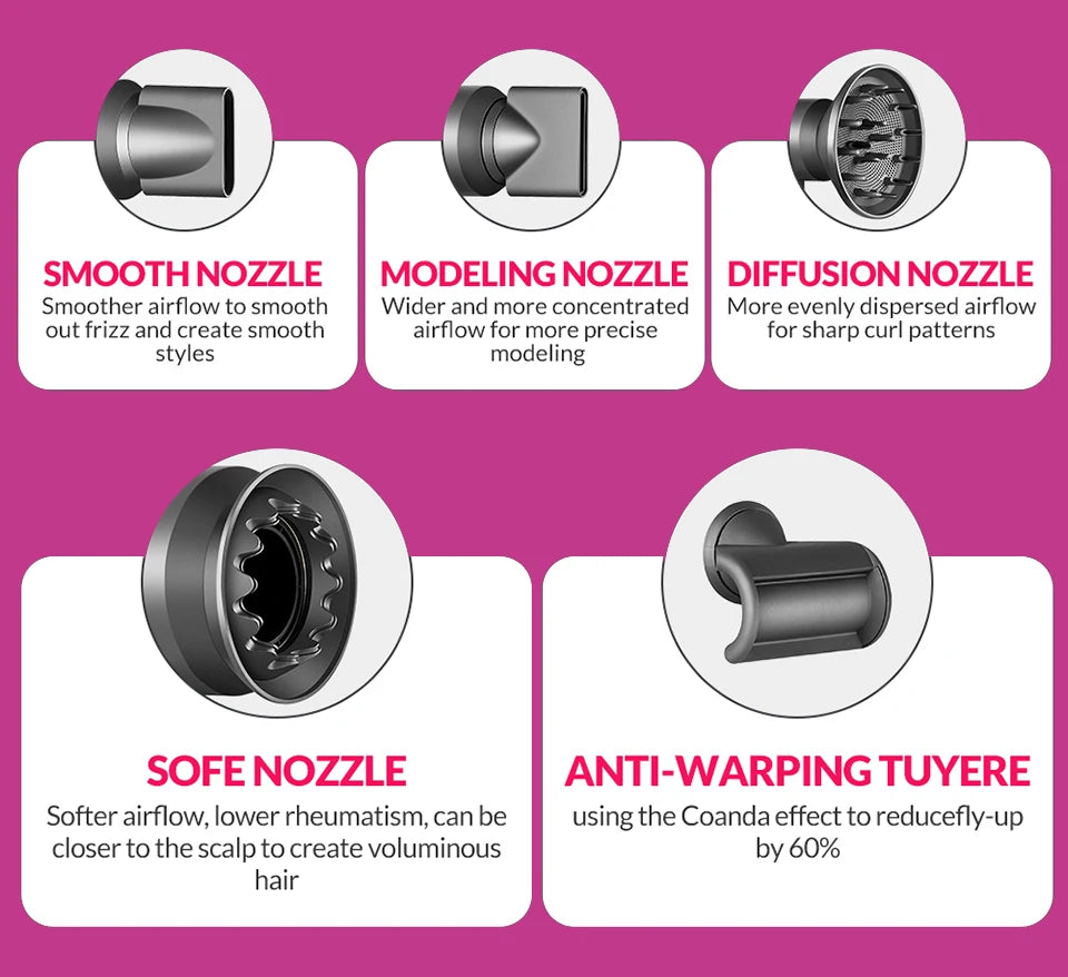 Diffuser Hairdryer Ionic Professional 5in1 Electric Hair Dryer Heat Leaf Blow Drier With Diffuser Ion Leafless Air Blower Woman