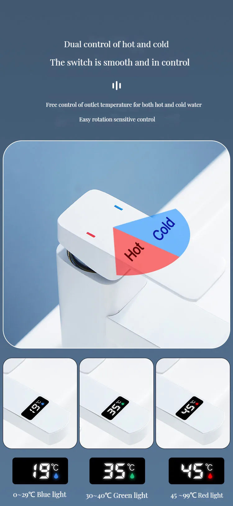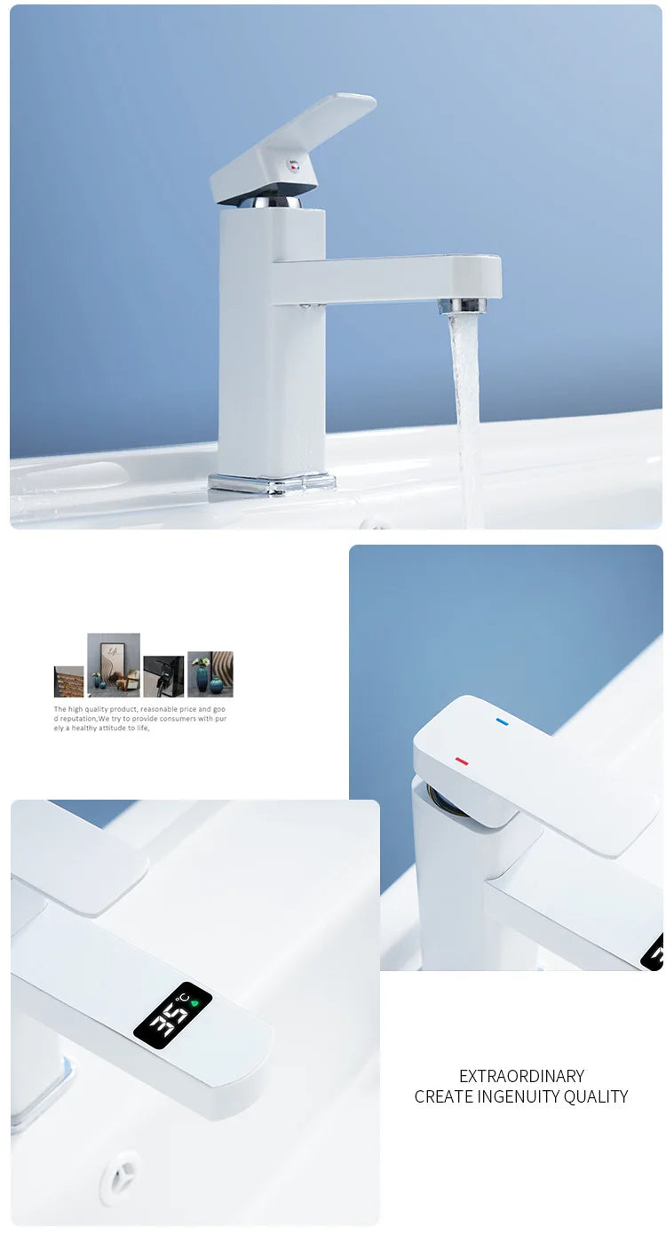 Digital Basin Faucets Smart Bathroom Faucet Shower Room Taps Water Temperature LED Black White Sink Tap Rotating Stainless Steel